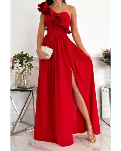 La robe de soirée Aleana est le choix idéal pour se faire remarquer lors d’un événement formel. Dotée d’un élégant volant sur l’épaule et d’un design incliné qui s’étend de la poitrine à la taille, cette robe est aussi flatteuse qu’élégante.
