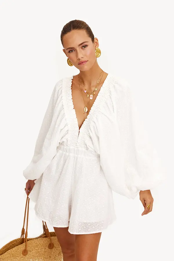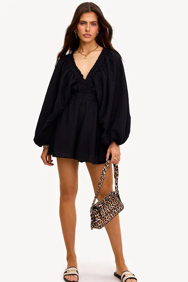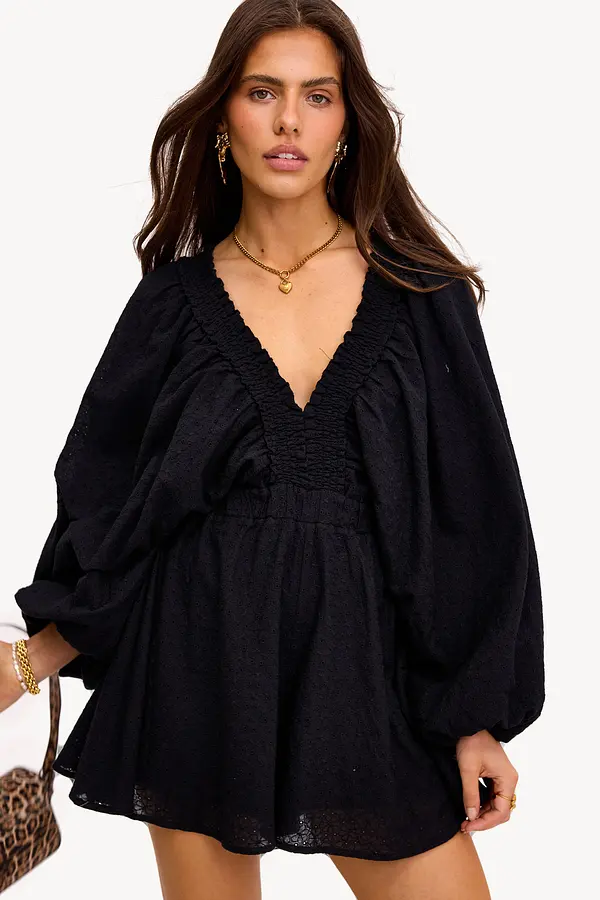 Ses manches bouffantes et son décolleté plongeant créent un look à la fois féminin et tendance, parfait pour toutes les occasions spéciales.
