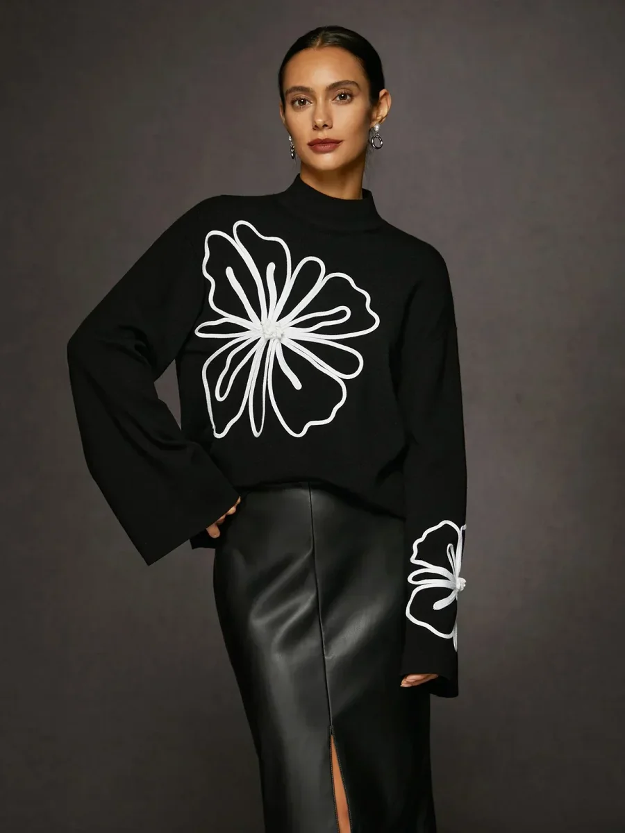 Amaya – Pull Col Montant | Motif Floral | Élégant & Moderne