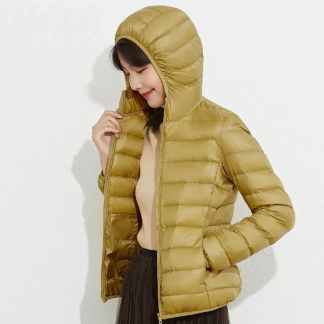 Andrea est la veste matelassée à capuche parfaite pour les femmes, conçue pour vous tenir au chaud et vous donner du chic pendant toute la saison froide.