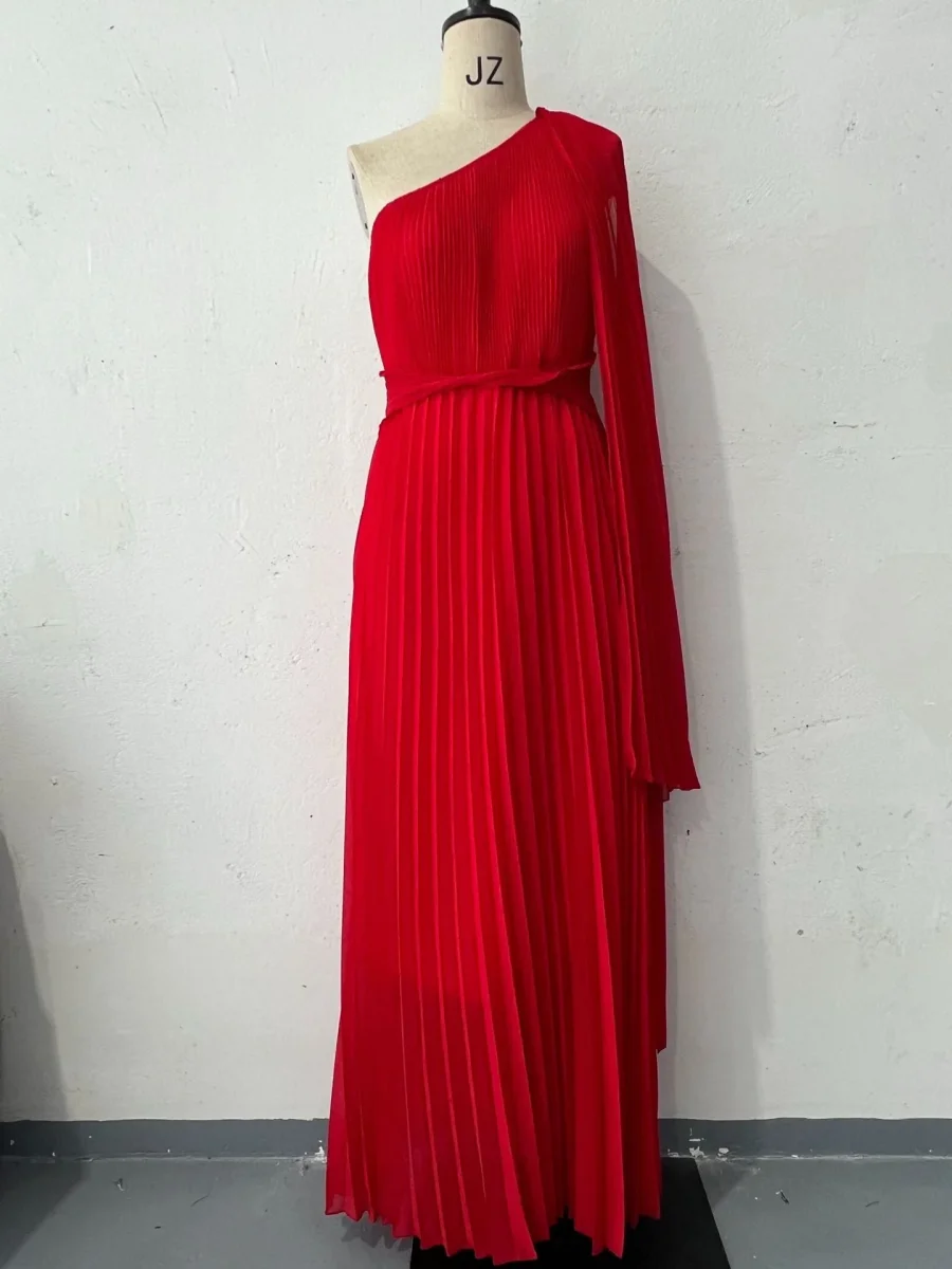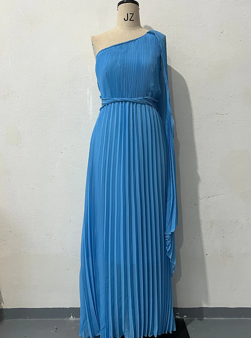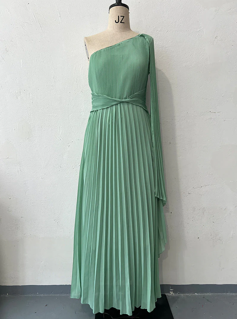 Asymmetrical Pleated Maxi Dress | Sculptural Elegance
