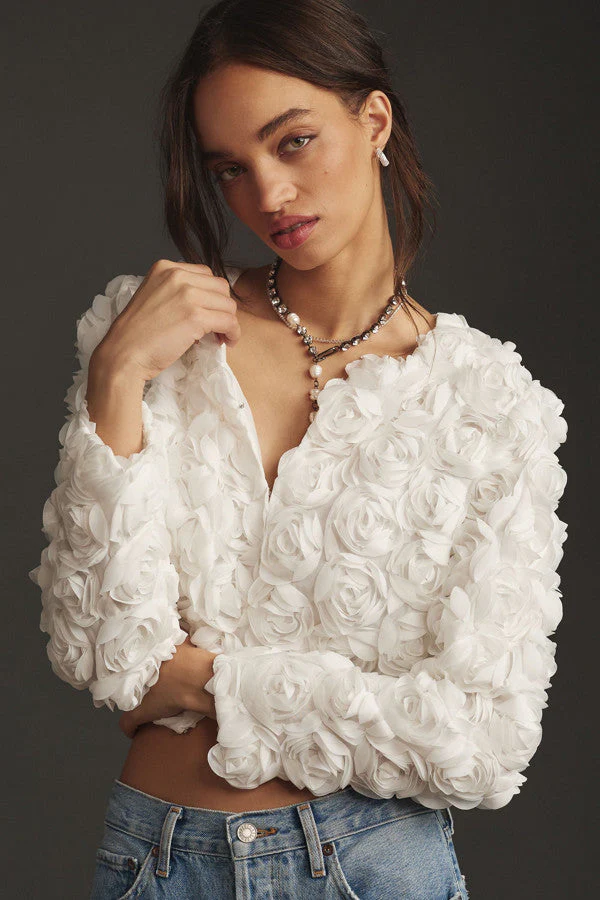 Blouse Blanche Fleurie 3D | Élégance Romantique et Texture Unique