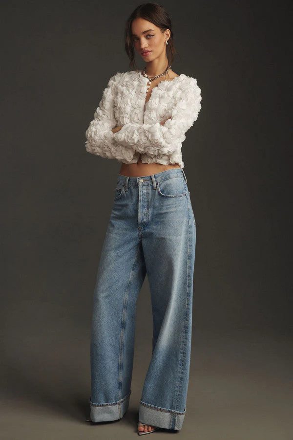 Cette blouse blanche se distingue par ses superbes fleurs en relief 3D qui couvrent l’ensemble du tissu, créant une texture spectaculaire.Avec sa coupe légèrement courte et ses manches longues, elle apporte une touche romantique et audacieuse à vos tenues.Idéale pour des occasions spéciales ou pour ajouter du caractère à un look plus simple. Détails : […]