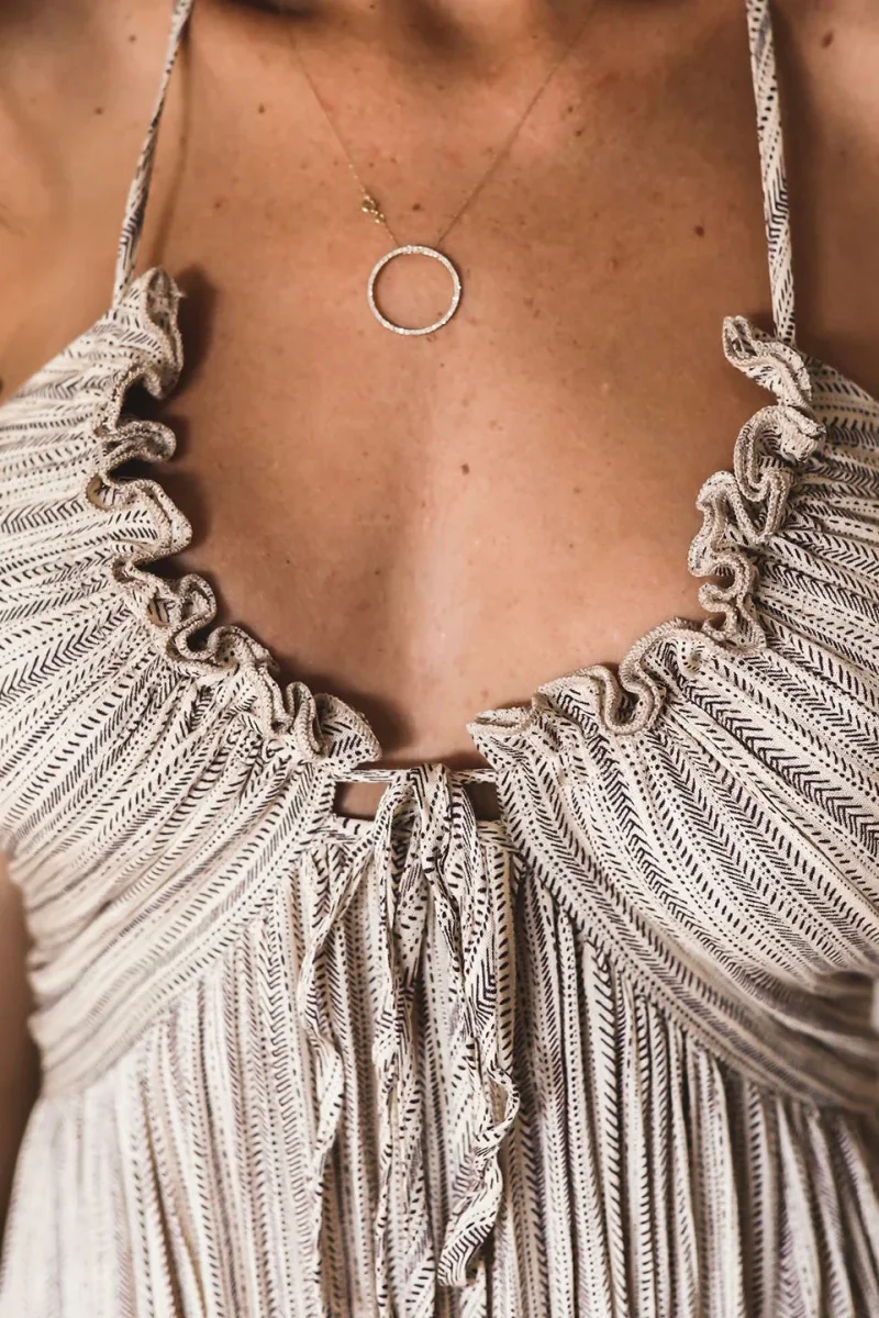 A flowing dress with bohemian charm, perfect for the hottest summer days.