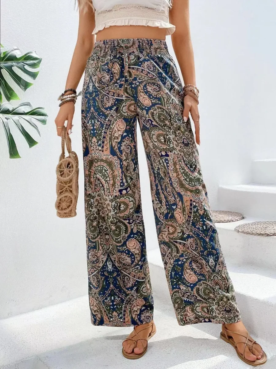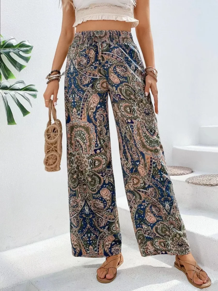Bohemian Print Wide Leg Pants | Light and Stylish