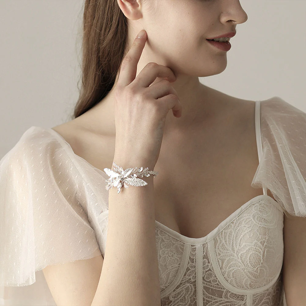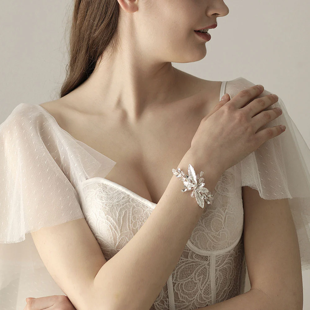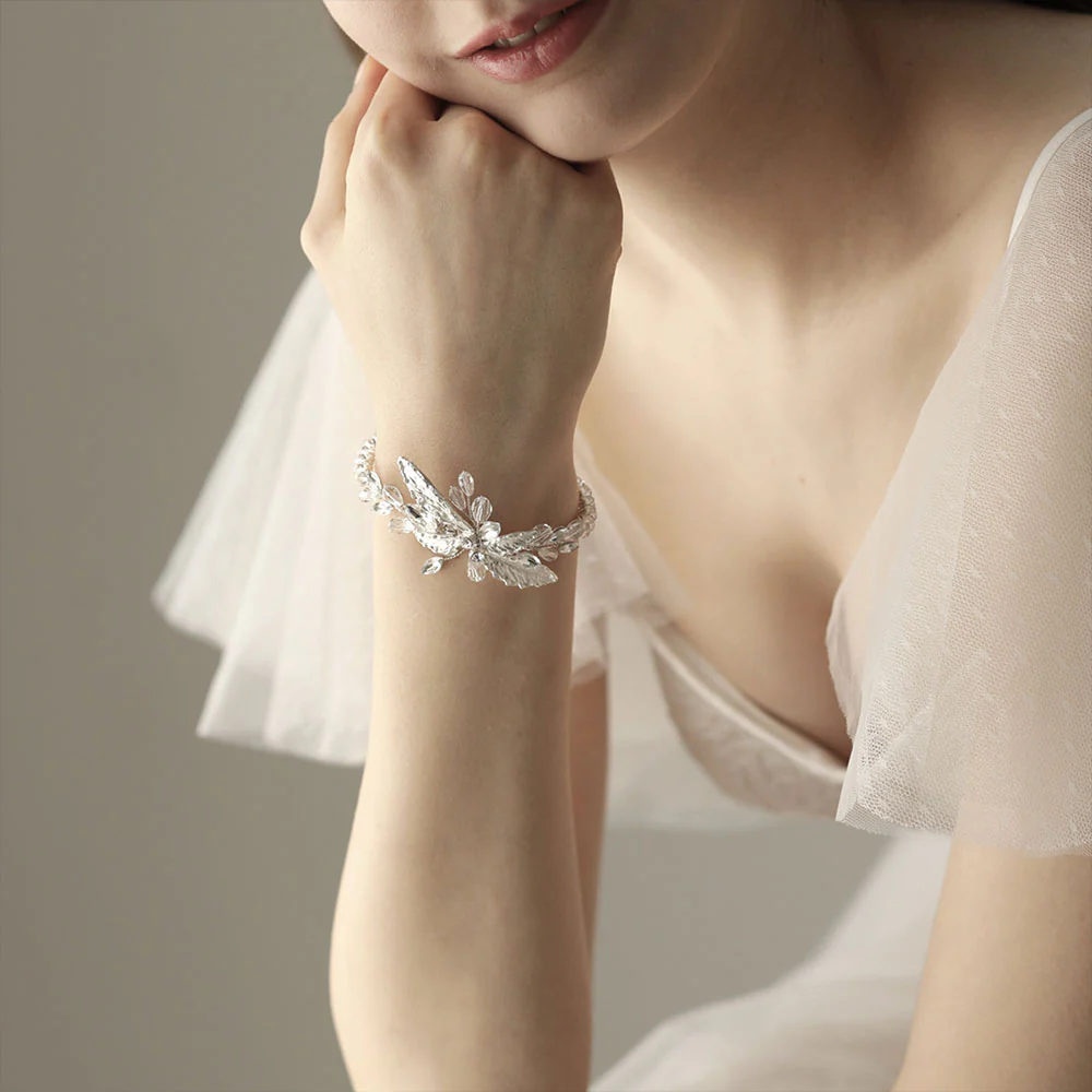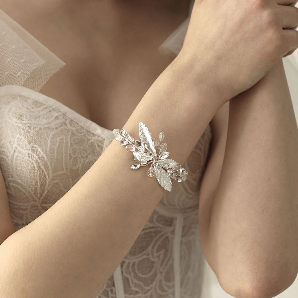 Bracelet De Mariage Feuilles Argentées