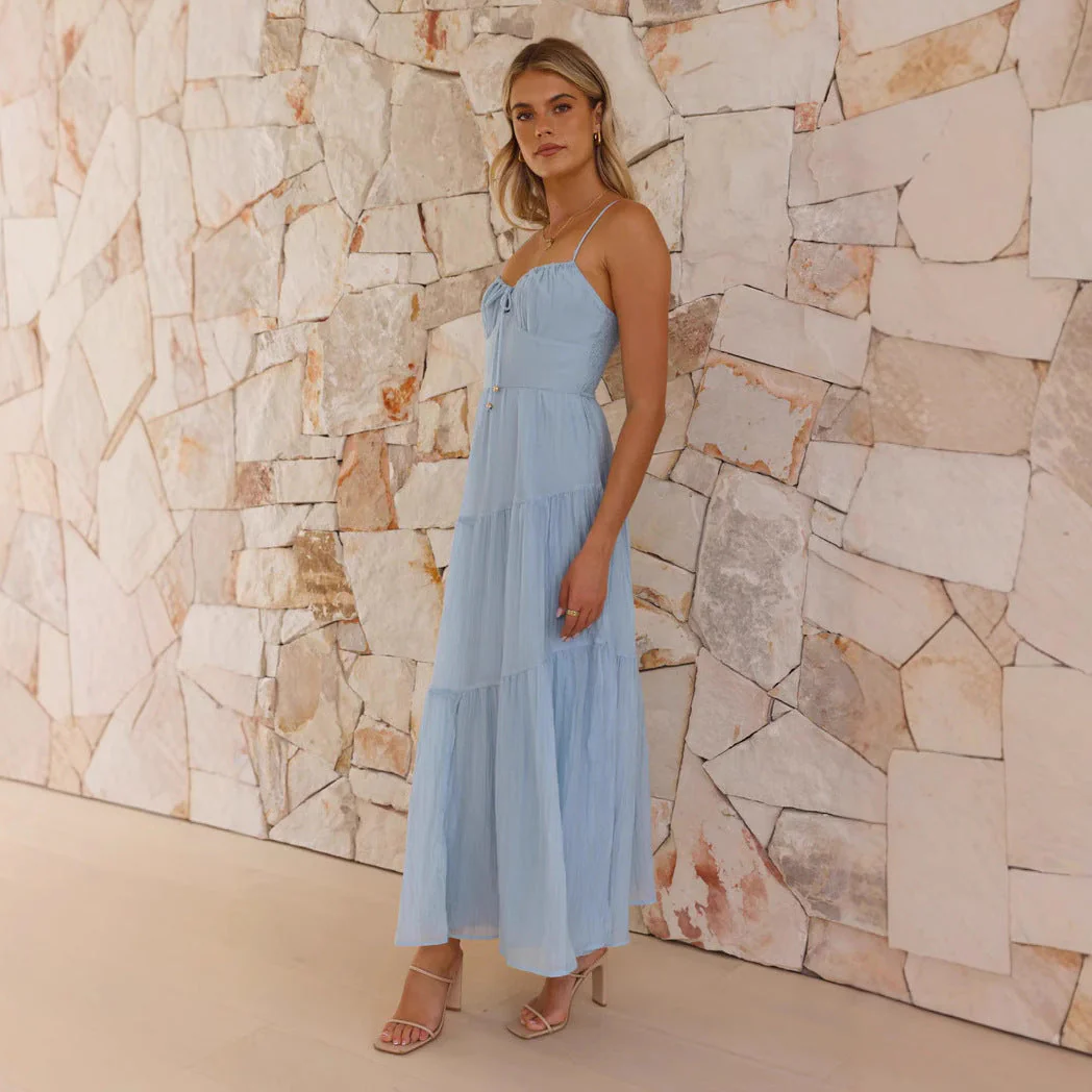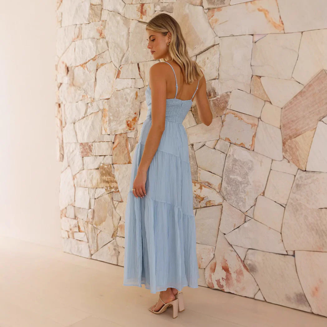 Let yourself be seduced by the lightness of this long dress with thin straps, perfect for sunny days.