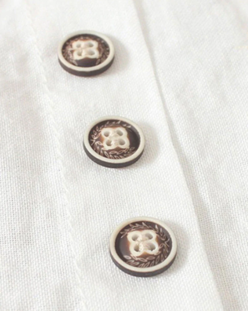 Its asymmetrical button detail and flowing cut give it a unique, natural style.