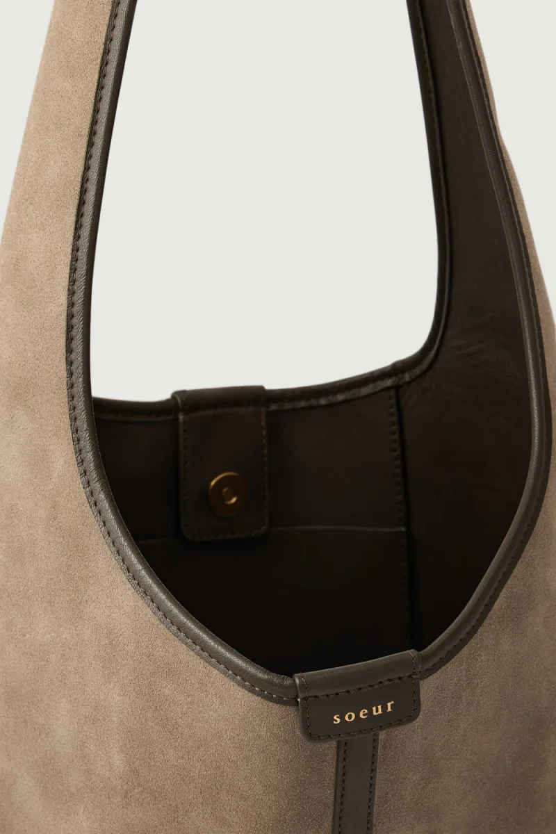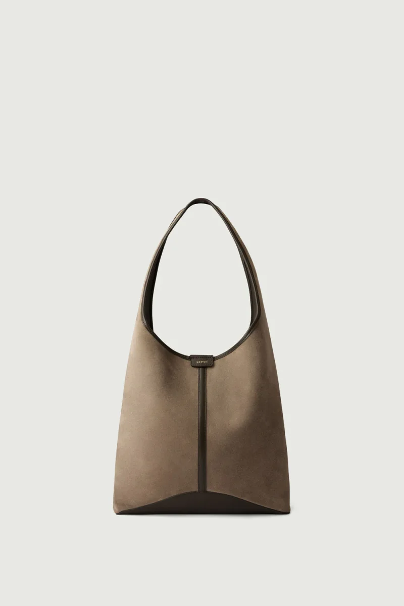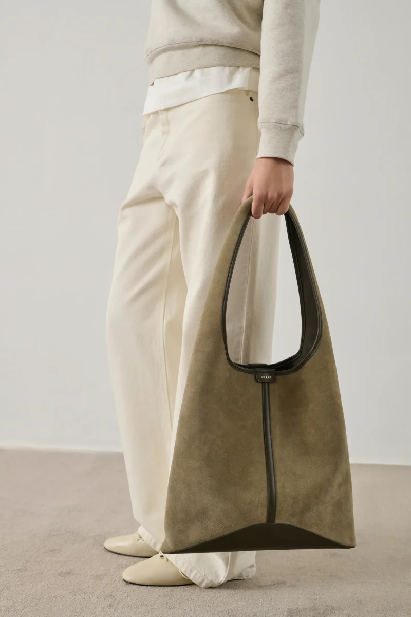 – Cabas en croûte de cuir gris et cuir lisse terre d’ombre – Cuir LWG (Leather Working Group)