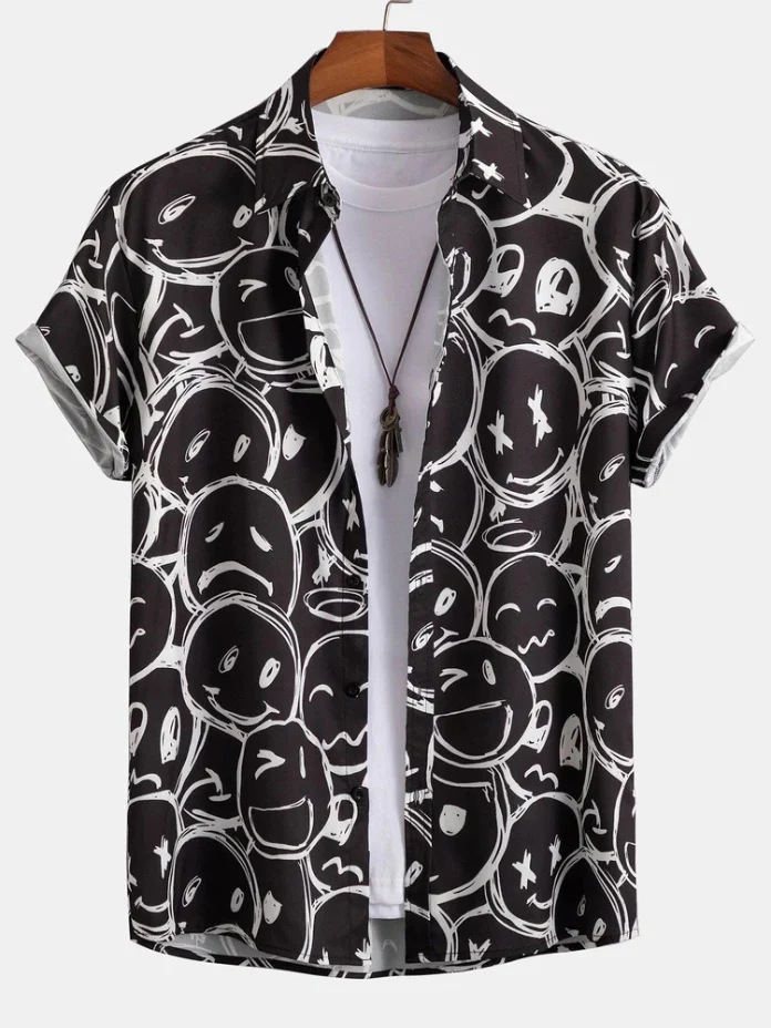 Apportez de la personnalité à votre garde-robe avec Callum, un polo décontracté pour hommes conçu pour le confort et le style. Doté d’un motif emoji ludique, ce polo ajoute une touche amusante et moderne à votre look de tous les jours.