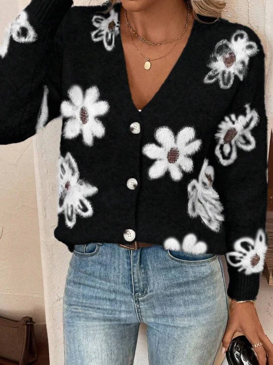 Camille – Gilet Boutonné Fleuri | Doux | Tendance Bohème