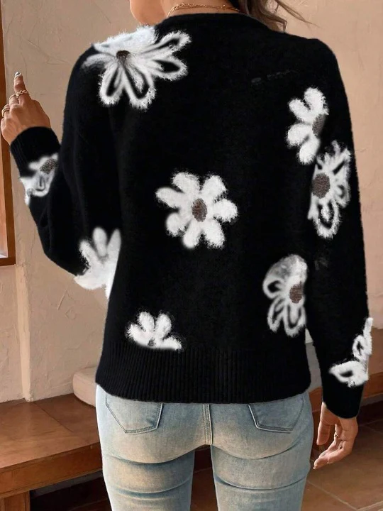 Amaya – Pull Col Montant | Motif Floral | Élégant & Moderne