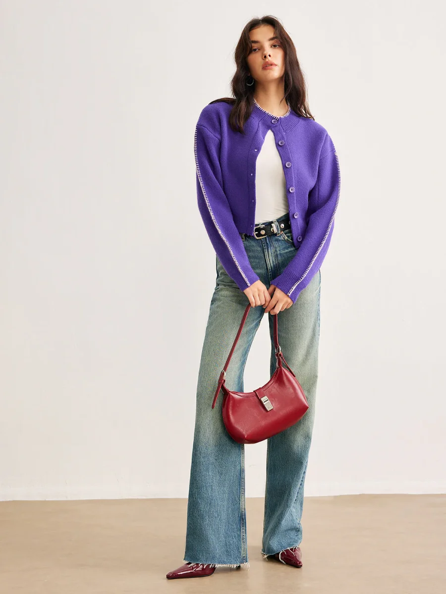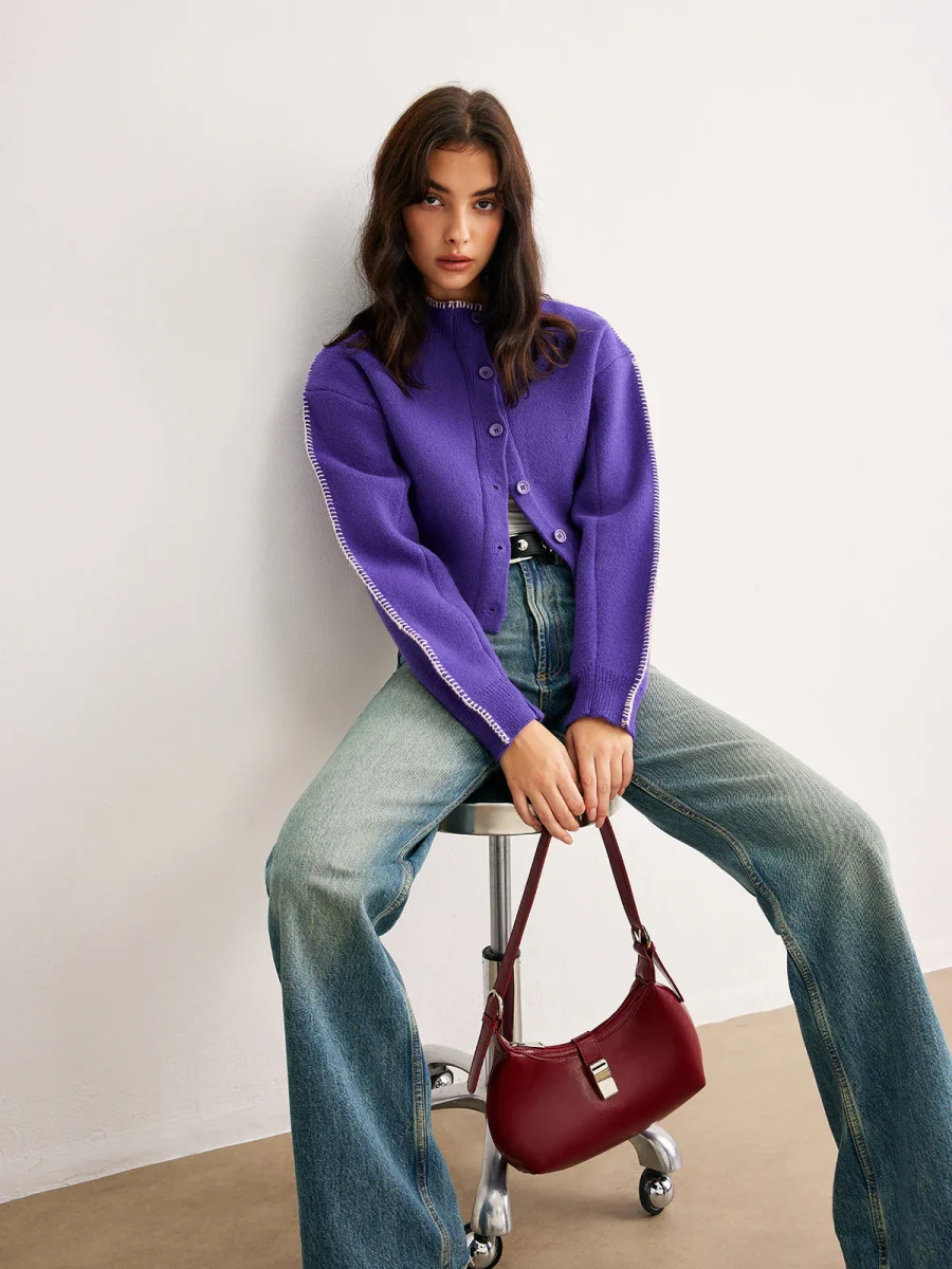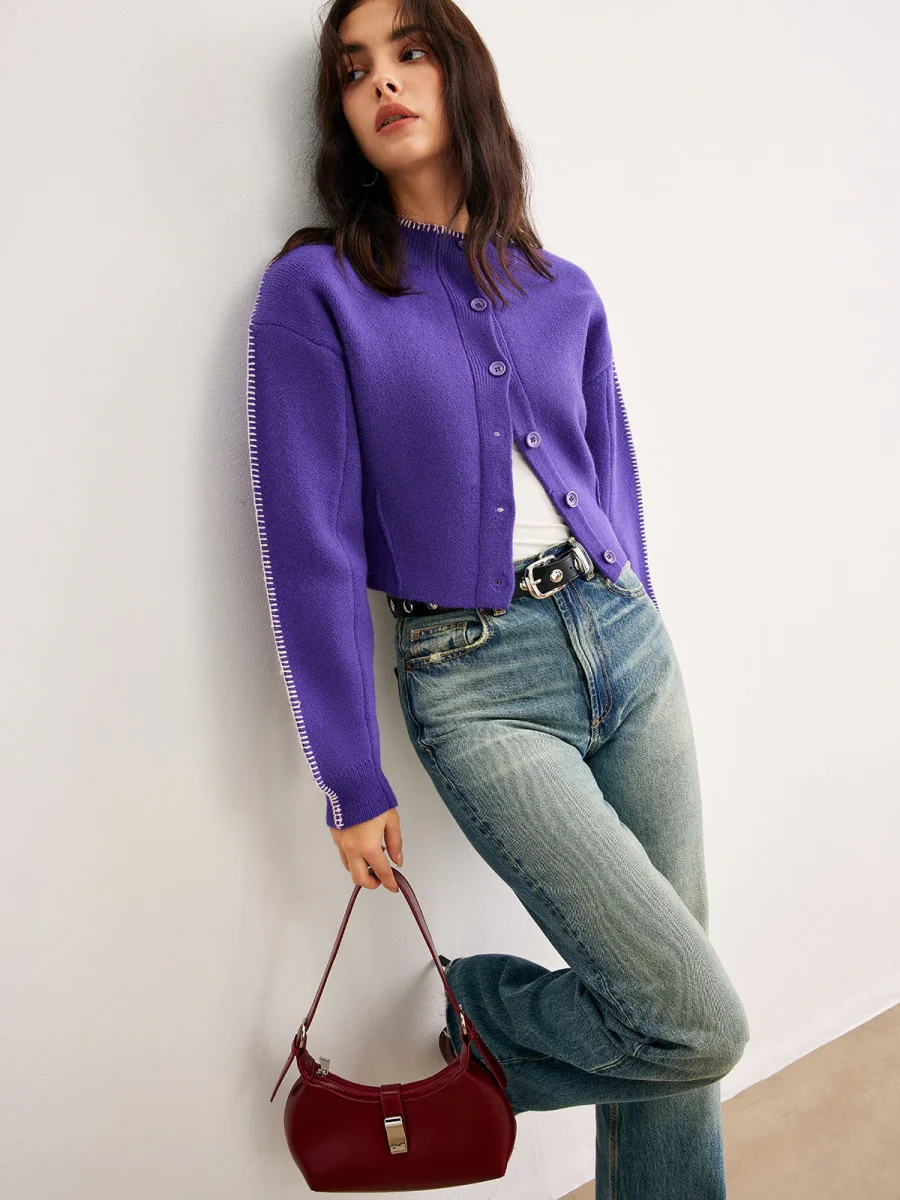 Cardigan en Maille | Tricot Violet | Couche Douce et Stylée