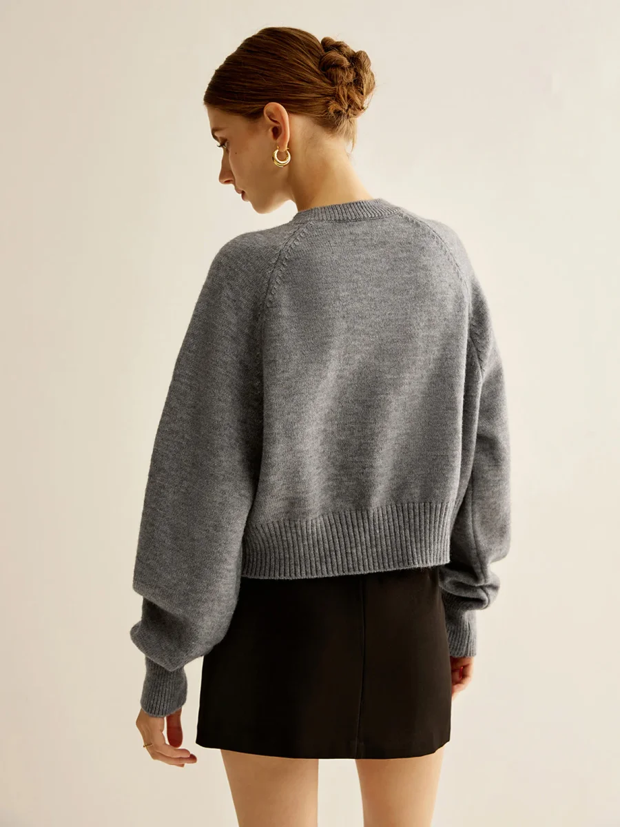 – Sleeves: Long with raglan shoulders and ribbed cuffs