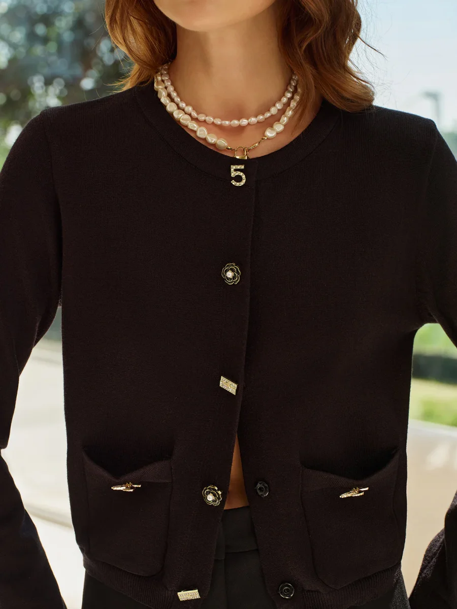 Cardigan Noir | Détails Dorés | Élégance Classique et Chic
