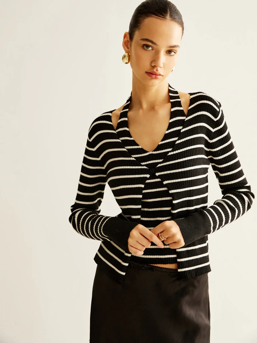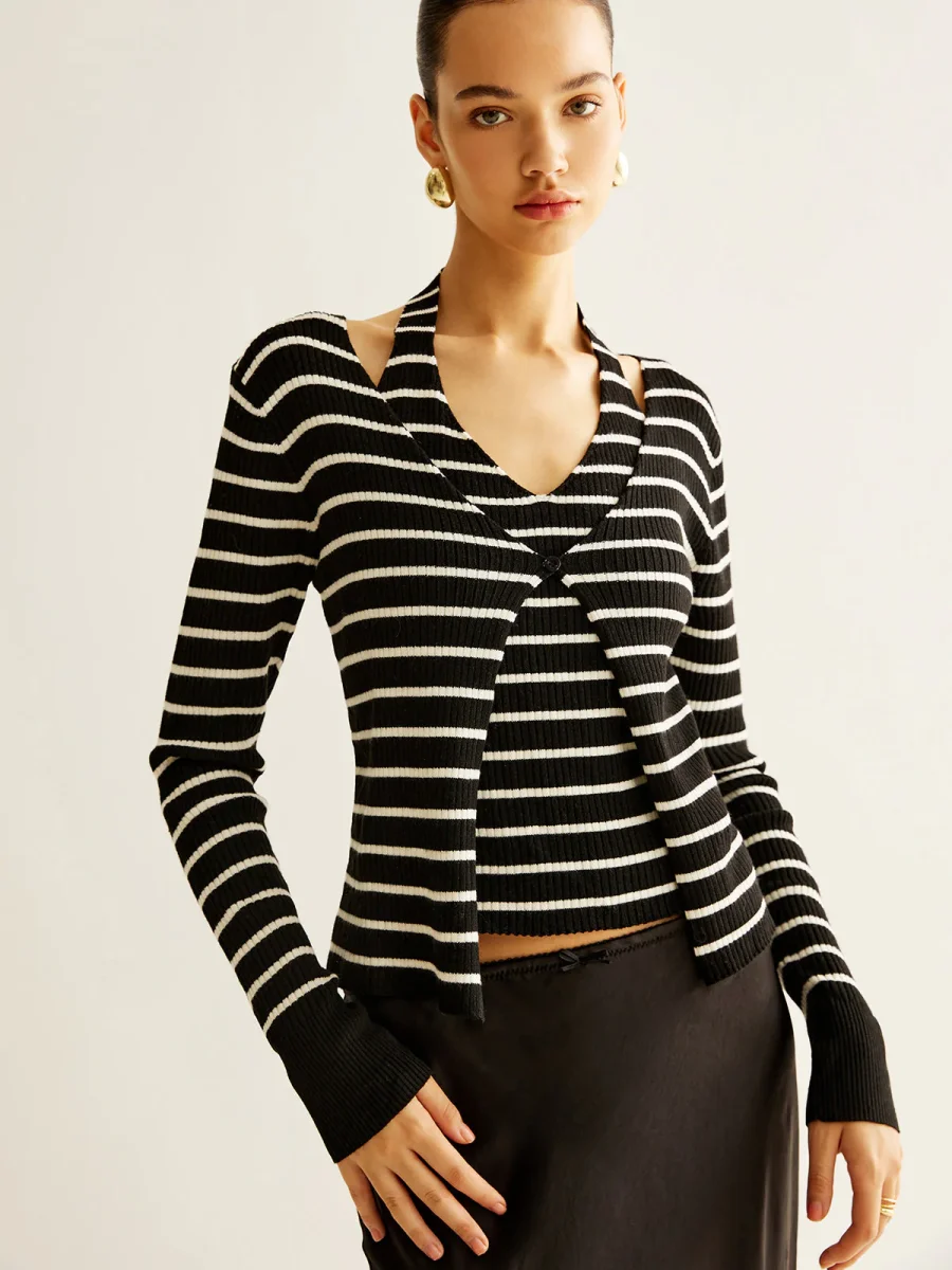 Cardigan Rayé Noir & Blanc | Coupe Ajustée | Élégance Graphique
