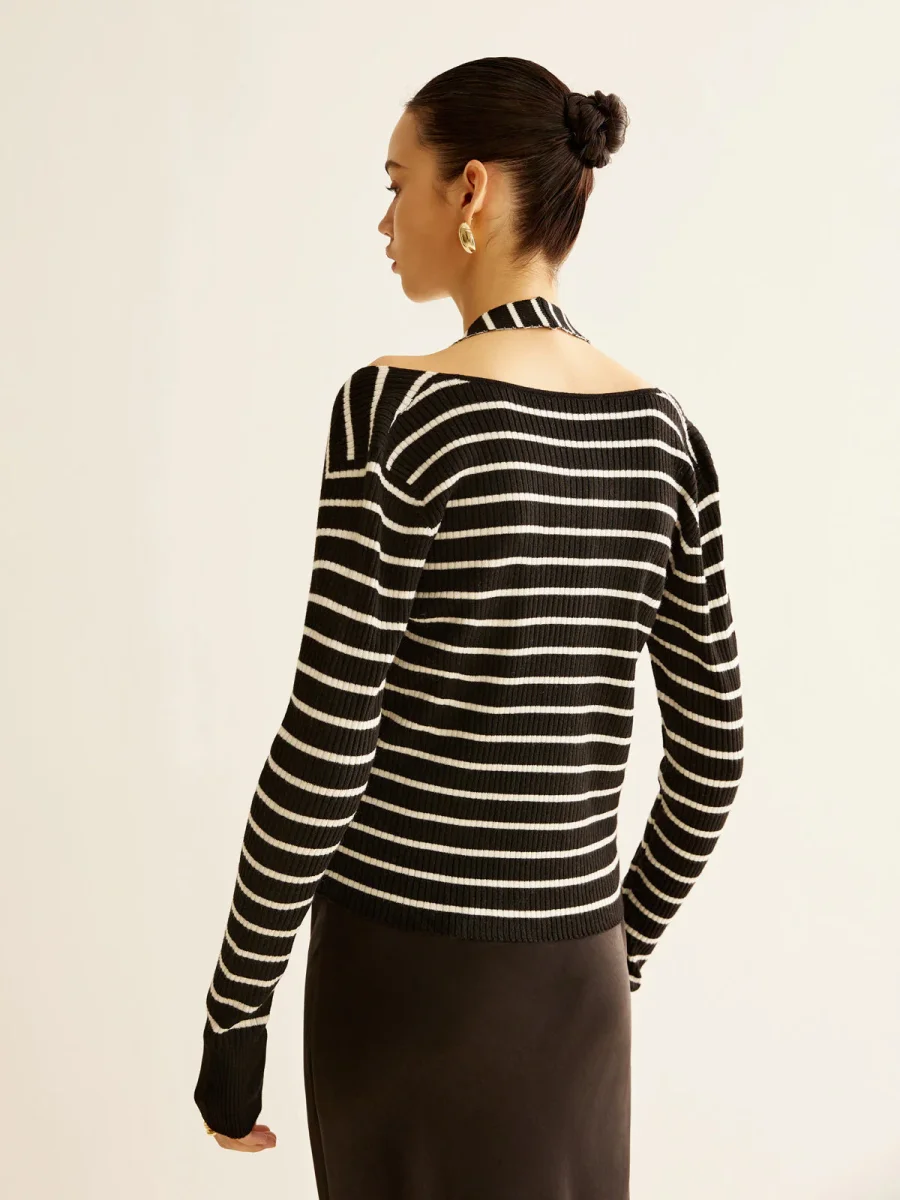 Ava – Pull en Maille | Noir & Blanc | Confortable et Élégant