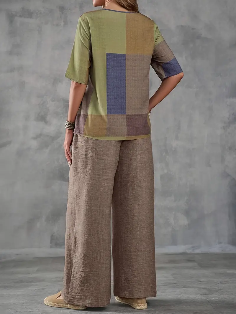 Casual Blouse and Printed Pants Set | Comfort and Colorful Style