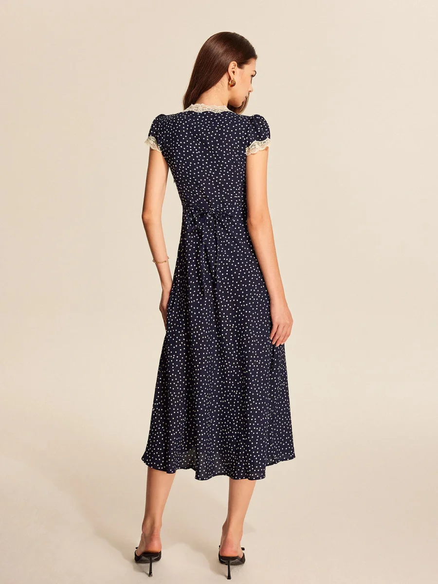 Charme Classique | Mi-Long Dress with Dots and Décolleté Lace