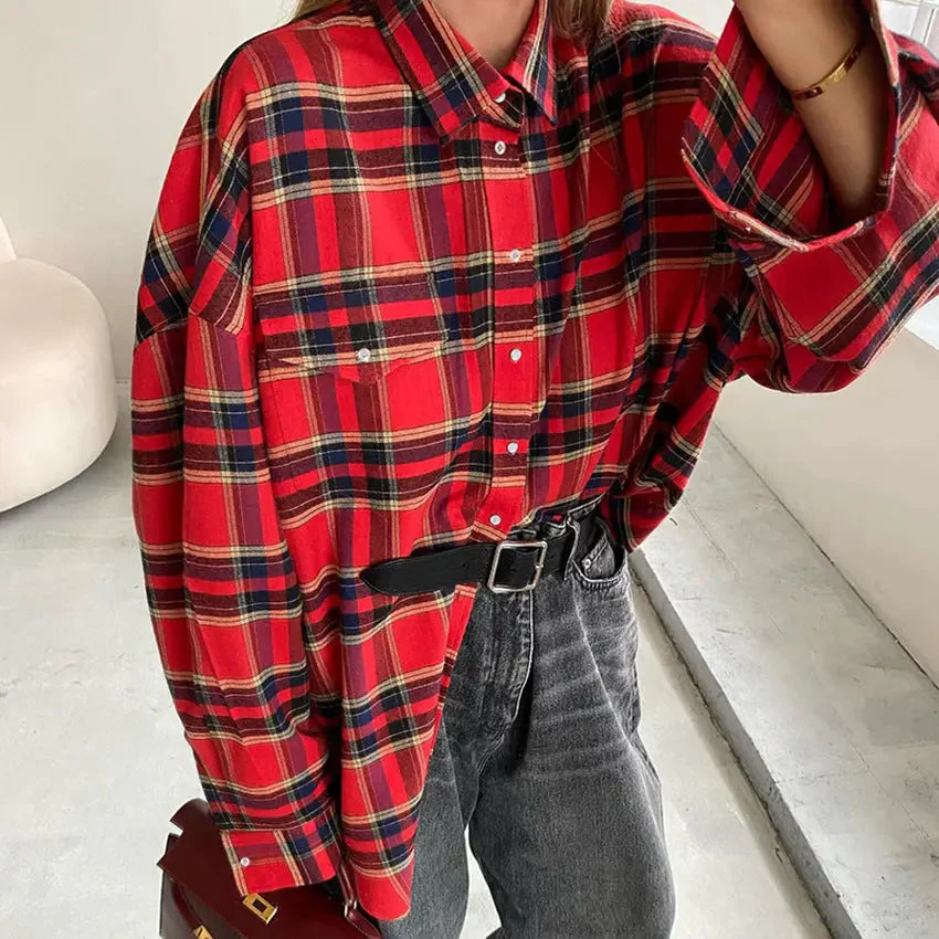 Cette chemise oversize à carreaux rouges est un indispensable du dressing casual chic.