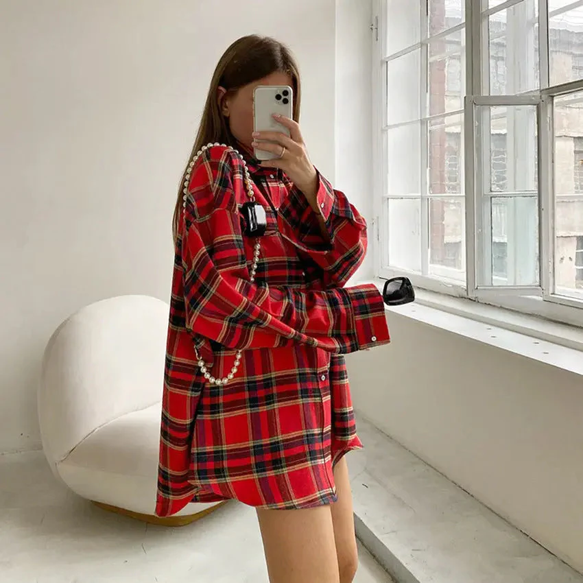 Chemise Oversize à Carreaux | 100% Coton | Look Décontracté et Tendance
