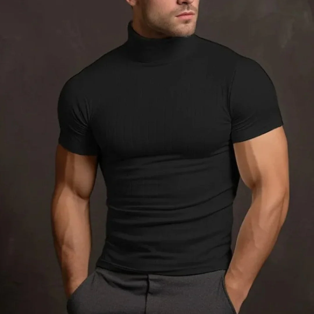Ce col roulé noir à manches courtes offre un style minimaliste parfait pour un look chic et décontracté. Son tissu doux et extensible épouse parfaitement votre silhouette pour un confort optimal toute la journée.
