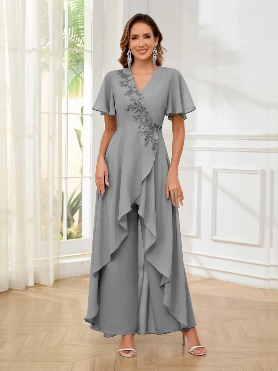 Combinaison-Pantalon Mère De La Mariée En Mousseline Dentelle À Zip Arrière Yaretzi