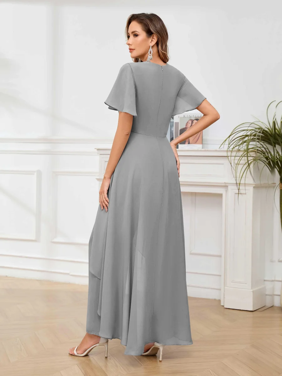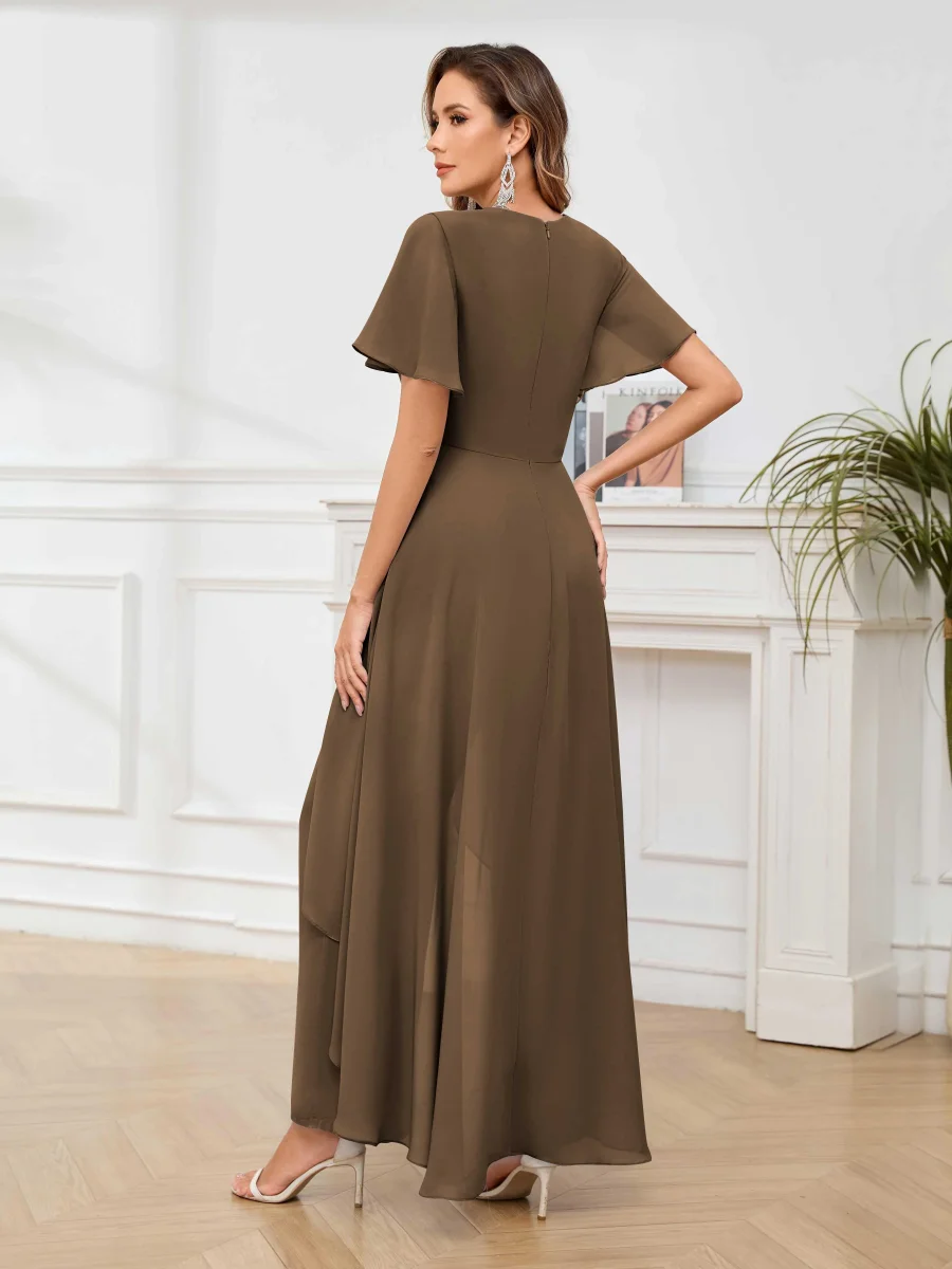 Mère De Mariée En Mousseline À Intellectuelle Trompette Col V Longueur Au Sol Aeliana