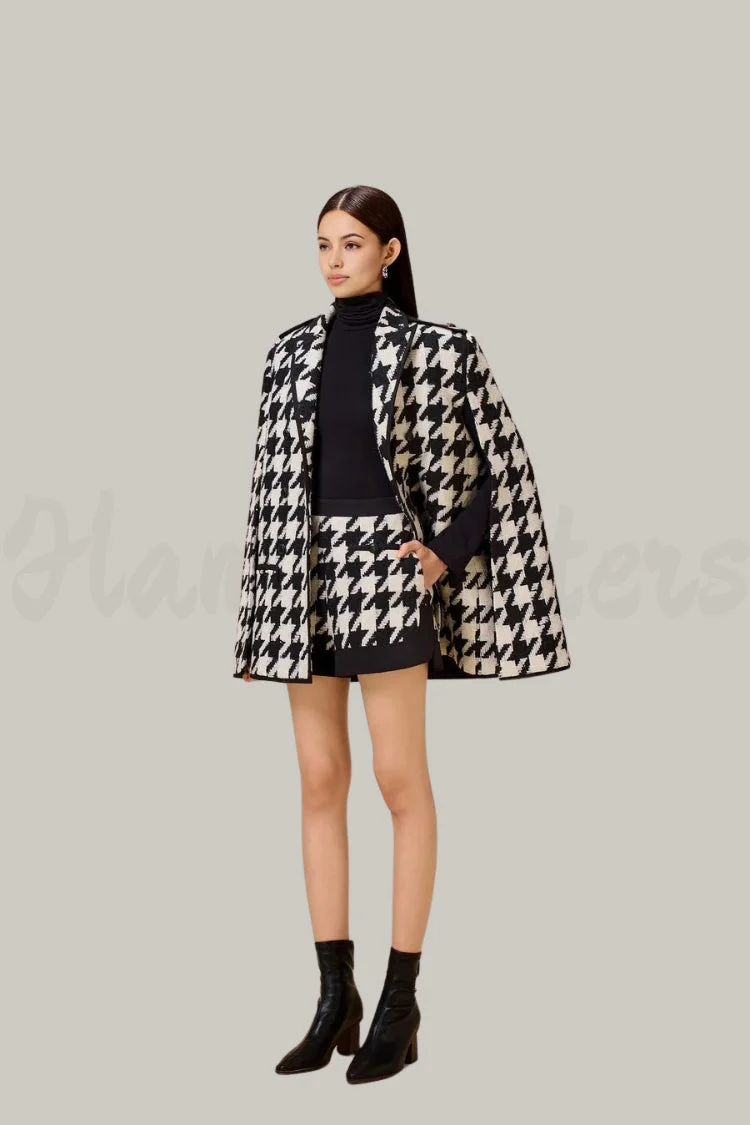 Elegance Houndstooth Cape | Sophisticated and Modern