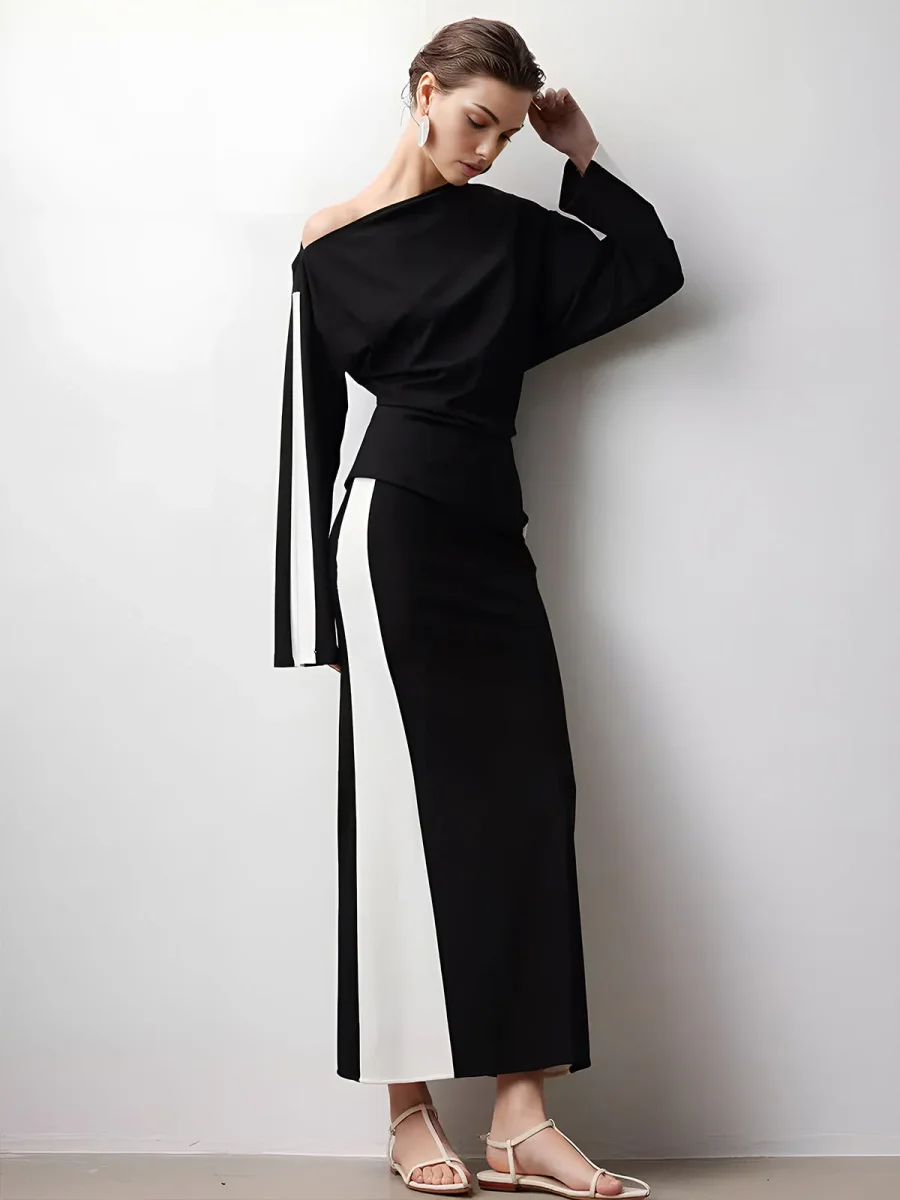 Looking for an elegant, sculptural maxi dress for a chic event or dressy evening? This asymmetrical black and white dress is designed to catch the eye with its graphic design and sophisticated cut.The dropped neckline and contrasting panels elongate the silhouette while offering a modern, distinguished style. Features– Material: 100% Cotton– Color: Black with contrasting […]