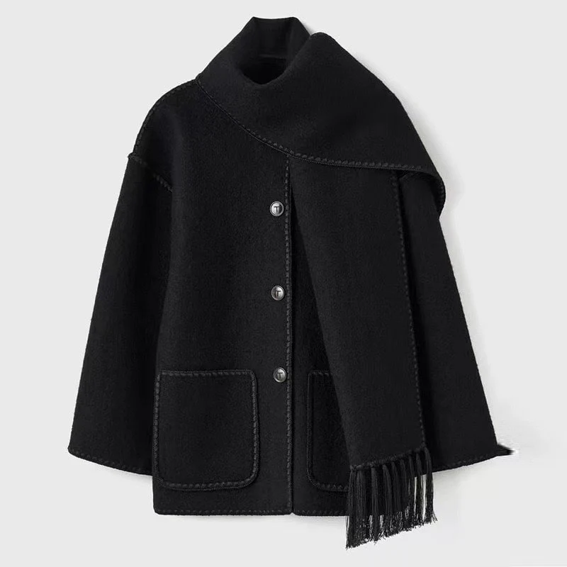Unique detail: the integrated scarf for an effortlessly chic touch.