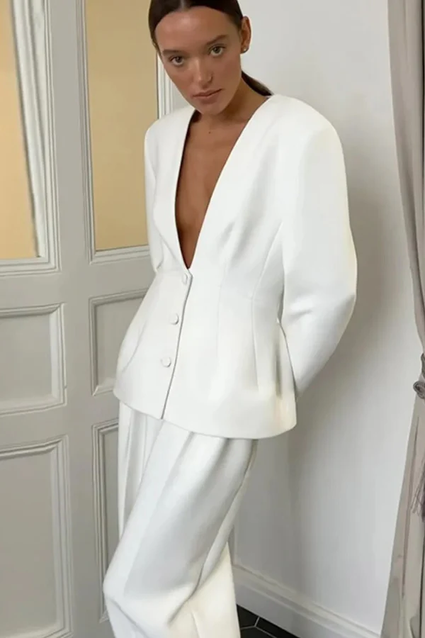 Elegant Suit with Deep Décolleté | Sculpted Allure and Haute Couture Minimalism