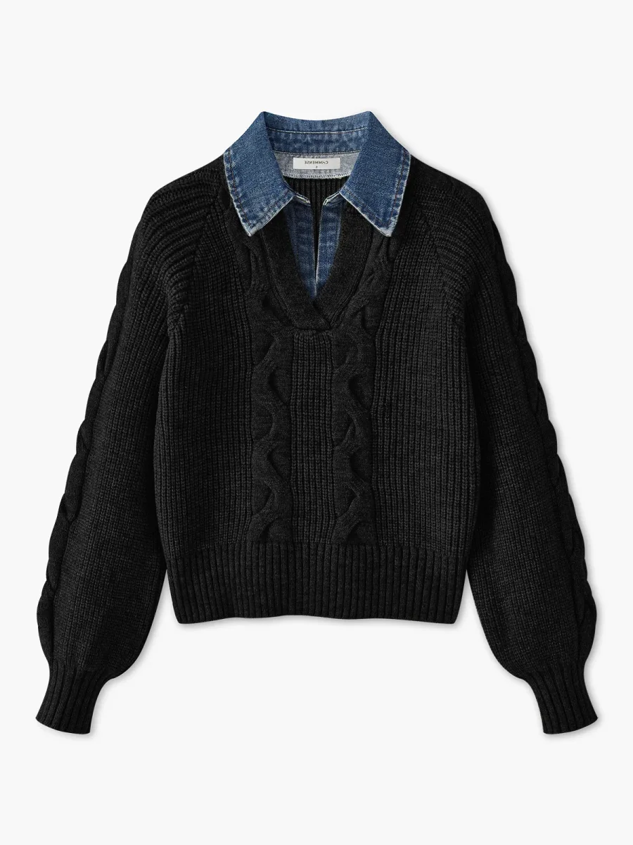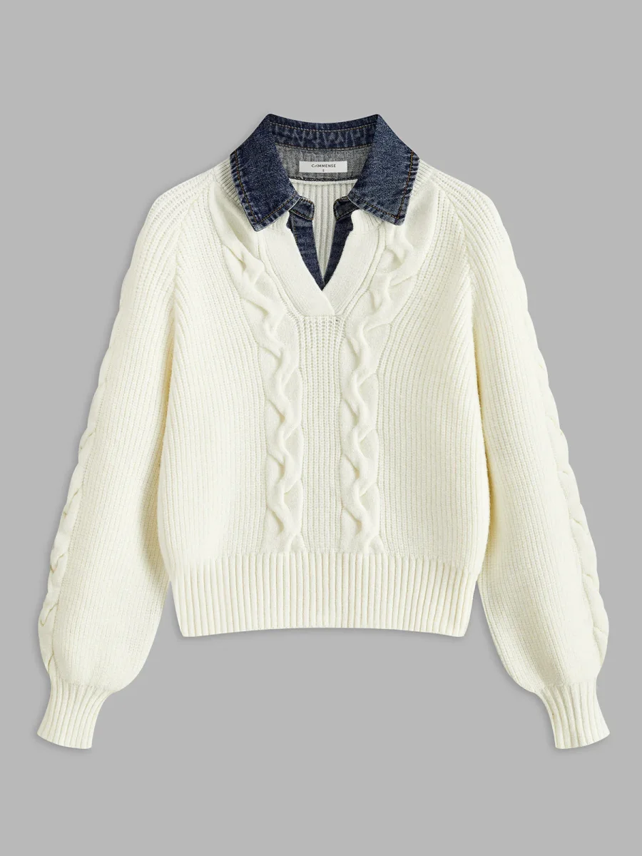 Elisa – Pull Col Denim | Maille Torsadée | Chic & Tendance