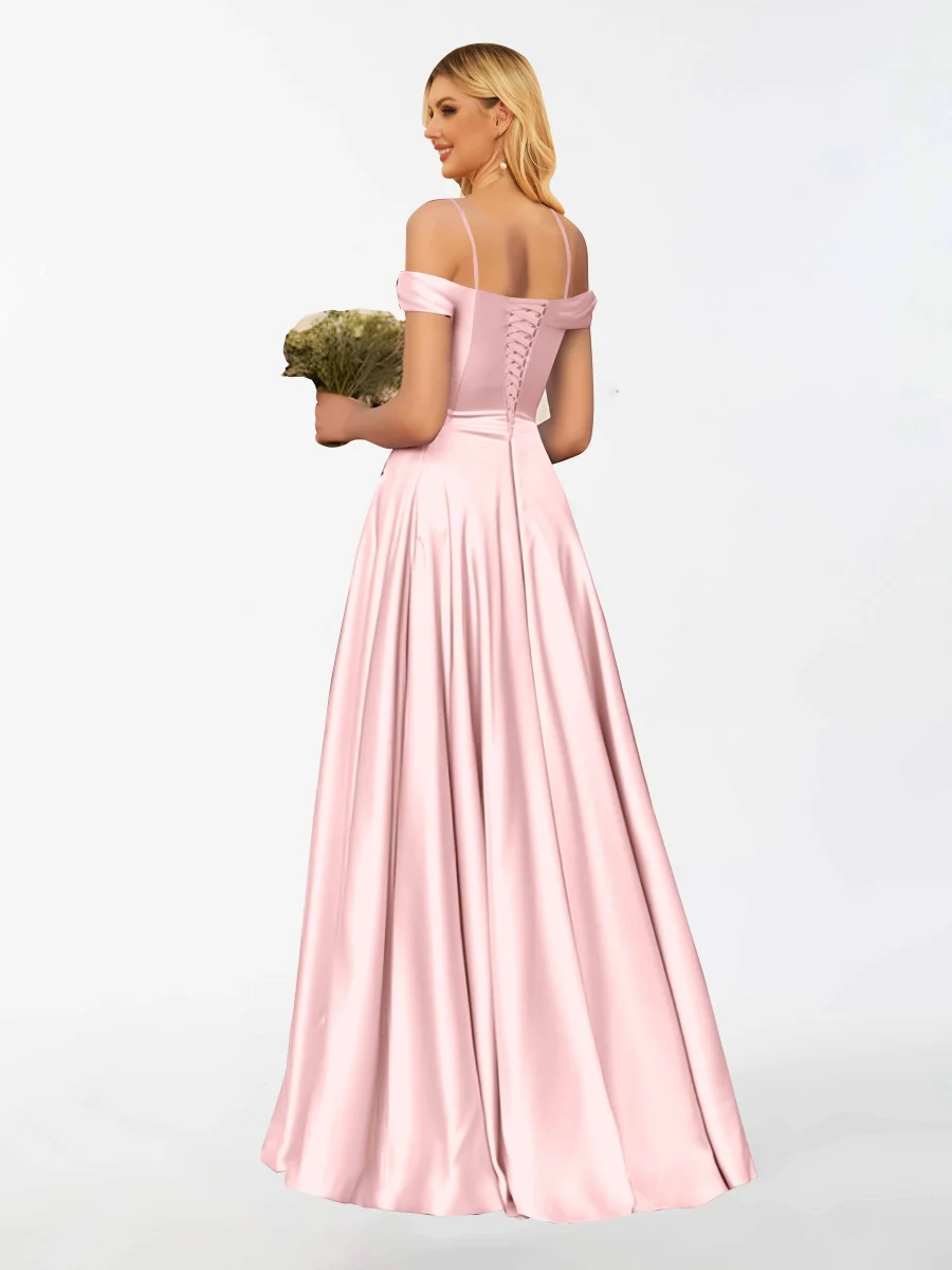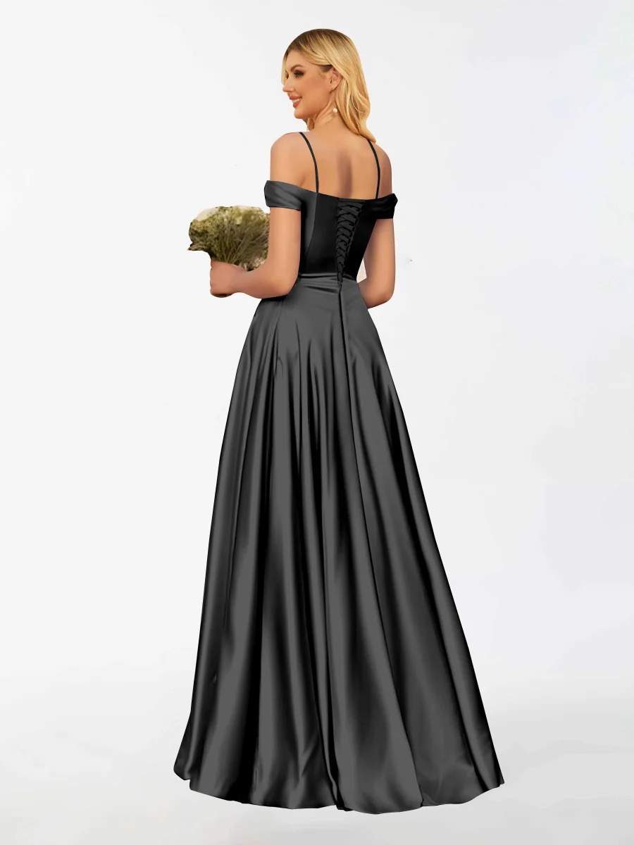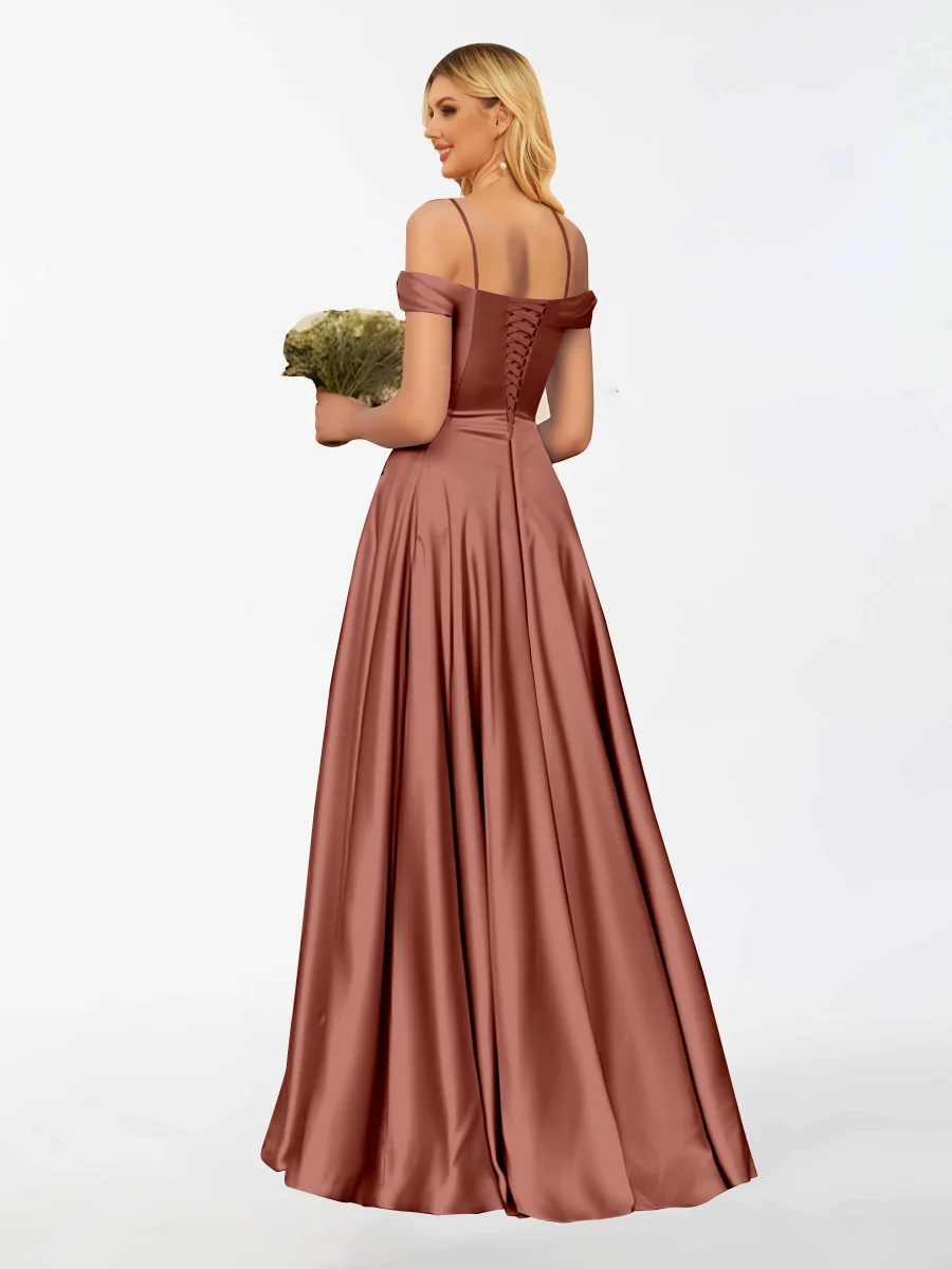 Enchanteur Spaghetti Sangles Plissé Longueur Satin Demoiselle D’honneur Robes Adelyn
