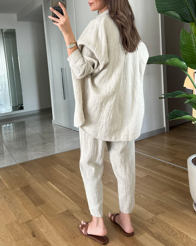 Ensemble en Lin Naturel | Chemise Ample & Pantalon Fluide | Léger et Respirable