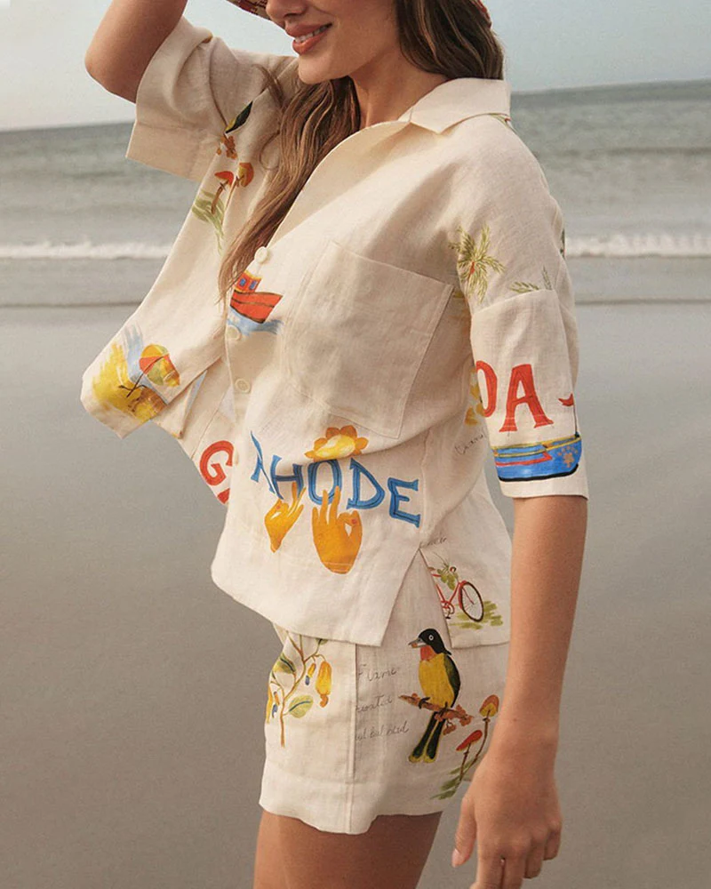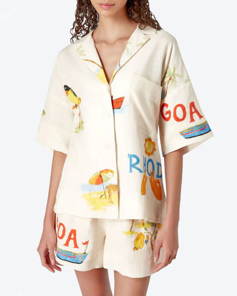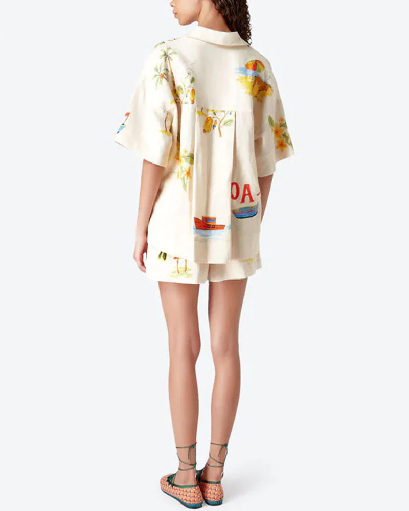 Cet ensemble chemise et short en lin au style tropical est léger, coloré et ultra-confortable.
