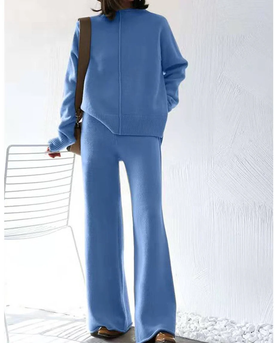 Ce set deux pièces gris en maille douce offre une silhouette ample et moderne, parfaite pour vos moments cocooning ou vos sorties décontractées avec une touche sophistiquée.