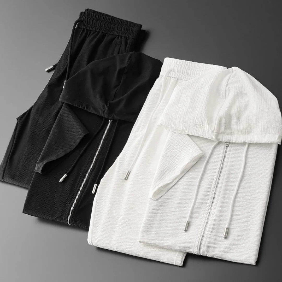 L’ensemble Erwan est conçu pour les hommes qui souhaitent combiner les performances sportives avec un look élégant et moderne. Que vous alliez à la salle de sport, que vous alliez courir ou que vous soyez simplement décontracté, cet ensemble offre un mélange parfait de flexibilité, de respirabilité et de praticité.