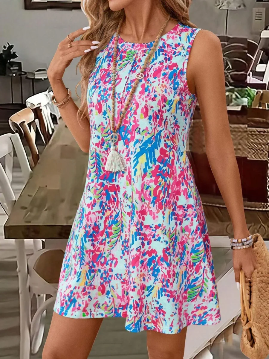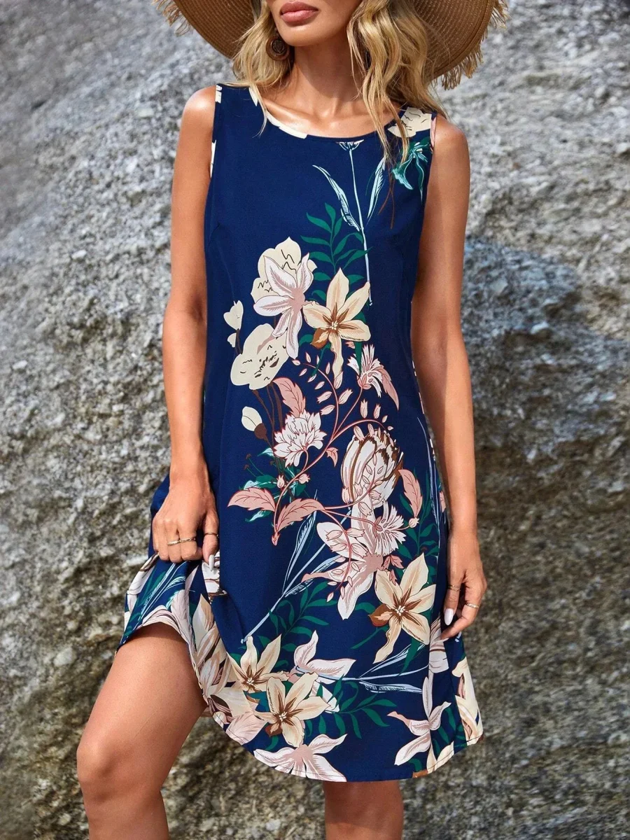 Let yourself be seduced by this sleeveless dress with assertive summer charm.