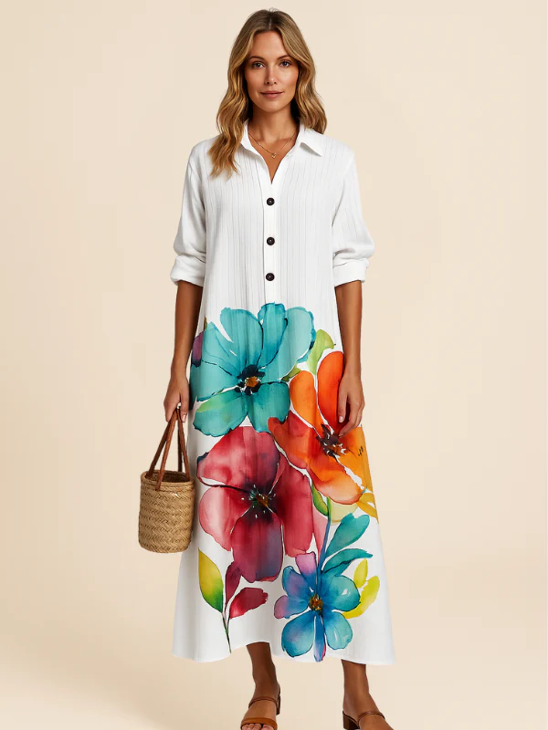 A luminous, flowing shirtdress, perfect for sunny days.