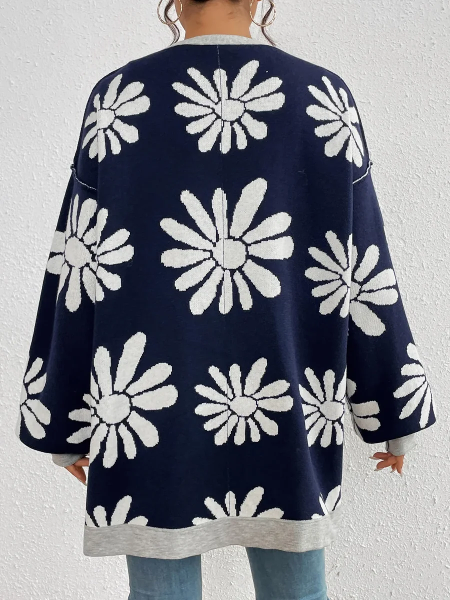 Graphic Flower Cardigan | Oversize with Contrasting Floral Pattern