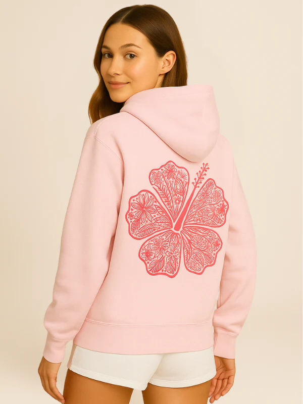Its large, stylized hibiscus motif on the back adds an artistic and original touch to this urban basic.