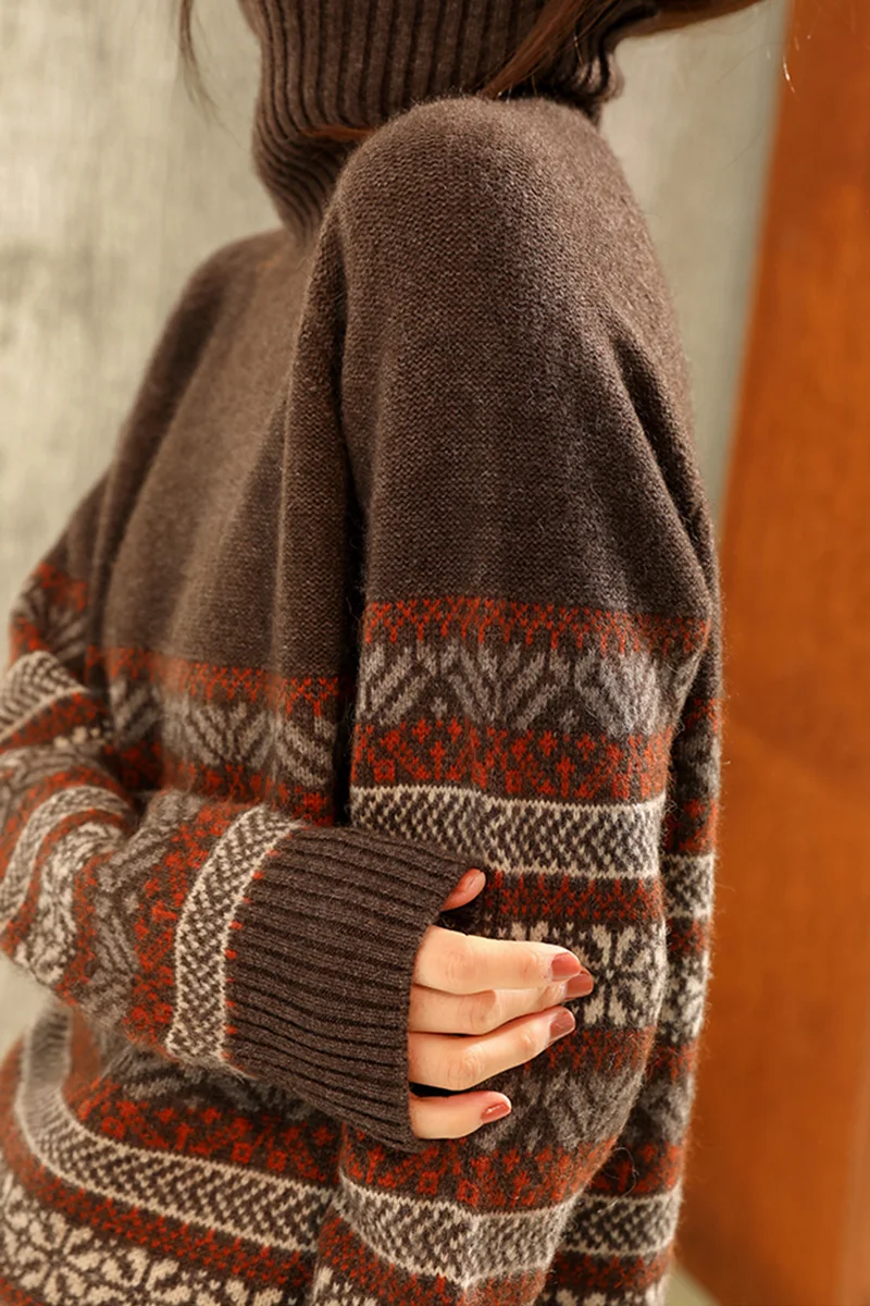 Ingrid – Pull Hiver | Col Roulé | Motif Scandinave