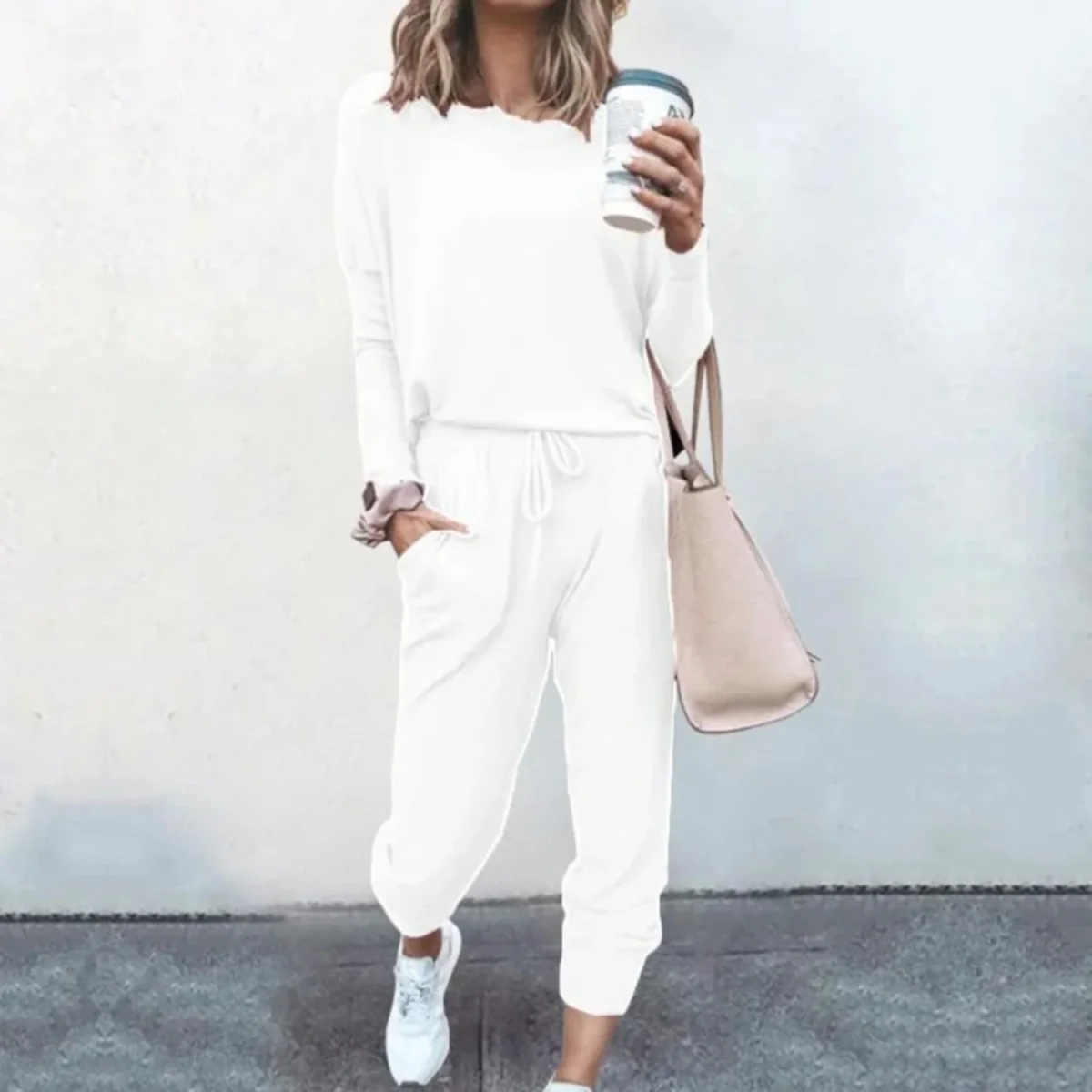 Composé d’un haut uni simple mais élégant et d’un pantalon de survêtement ultra-doux, cet ensemble est conçu pour vous garder au chaud sans compromettre un look chic et soigné. Idéal pour toute occasion décontractée, c’est le mélange parfait de facilité et de sophistication.