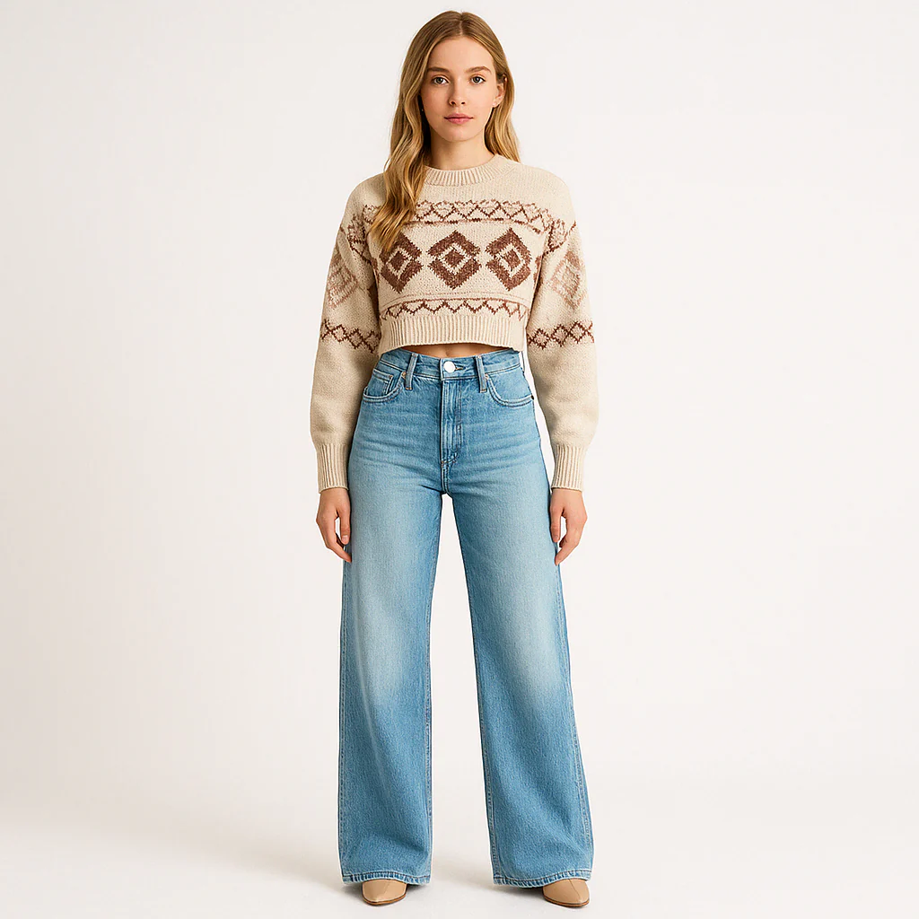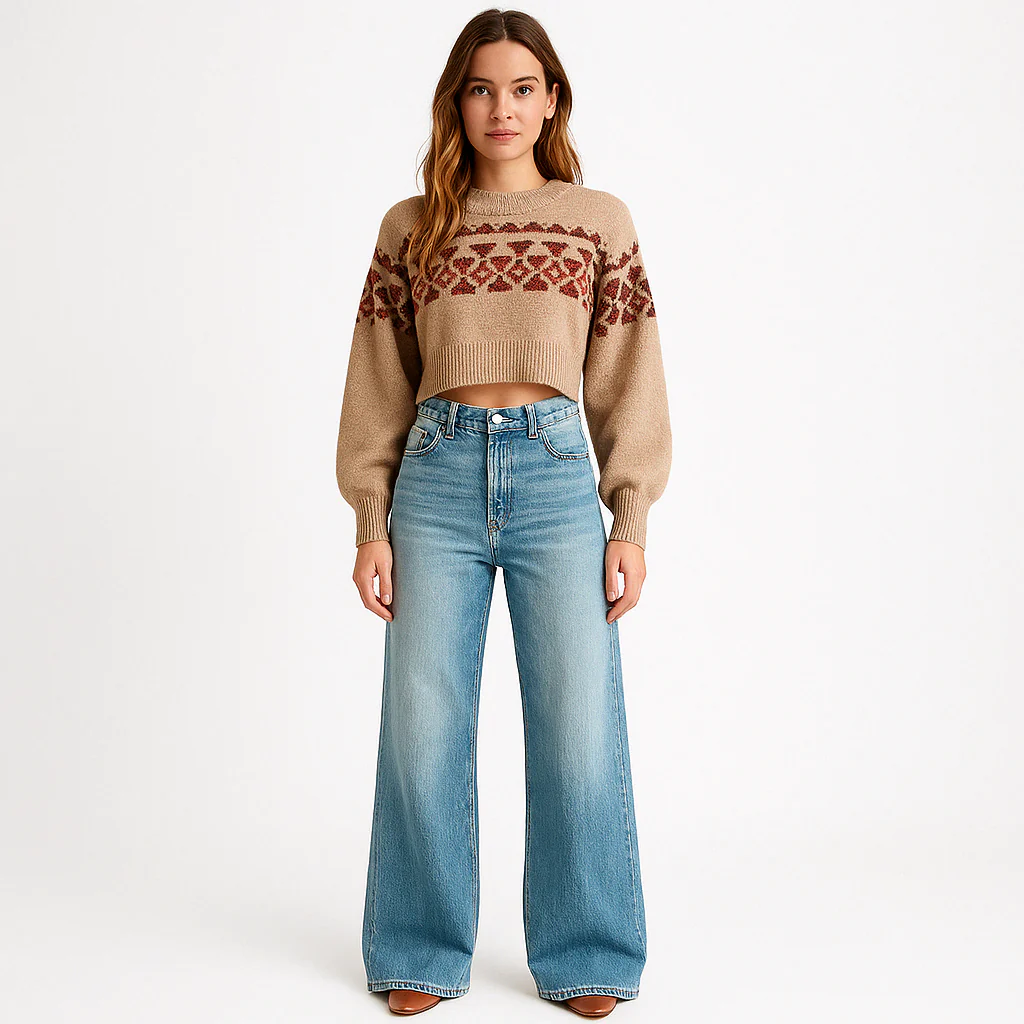 Idéal pour être porté avec des pulls courts, des tops ajustés ou des blouses légères.