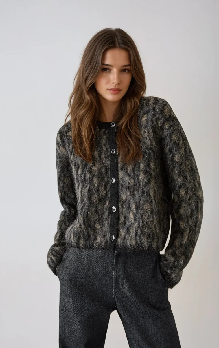 Le cardigan Léa arbore un imprimé léopard audacieux qui rehausse instantanément n’importe quelle tenue. Son tissu doux et chaud assure un confort absolu, tout en offrant une coupe flatteuse et moderne.
