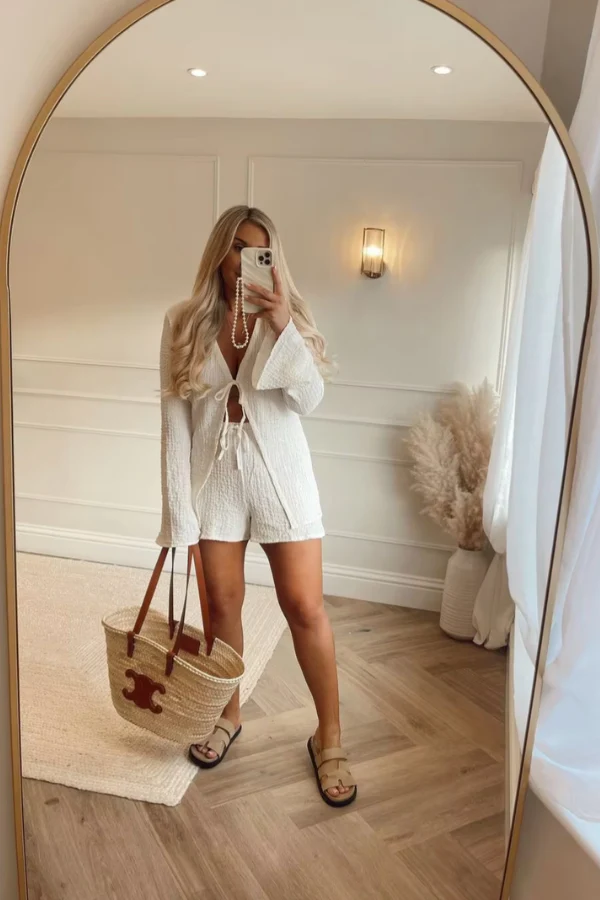 Wear with matching shorts or wide linen pants and complete with natural accessories for a refined summer look.