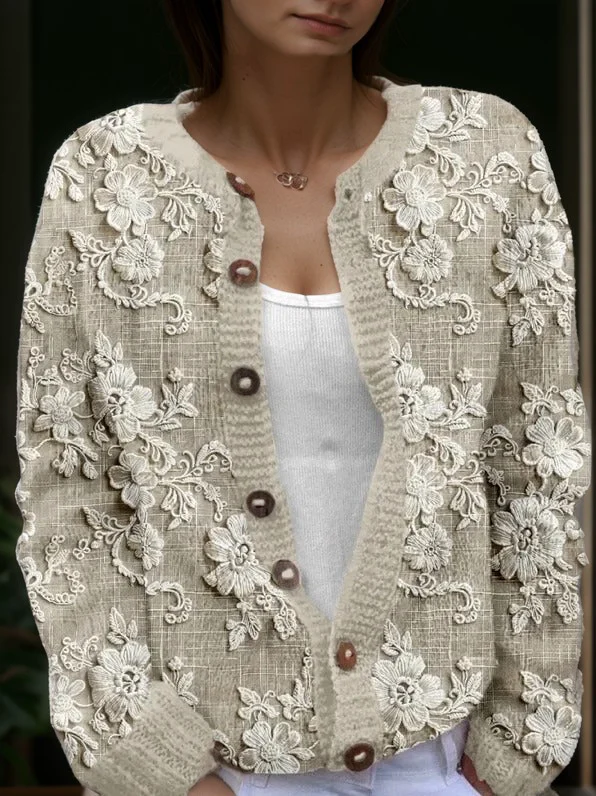 Lina – Cardigan en Laine | Fleuri | Élégant & Confortable