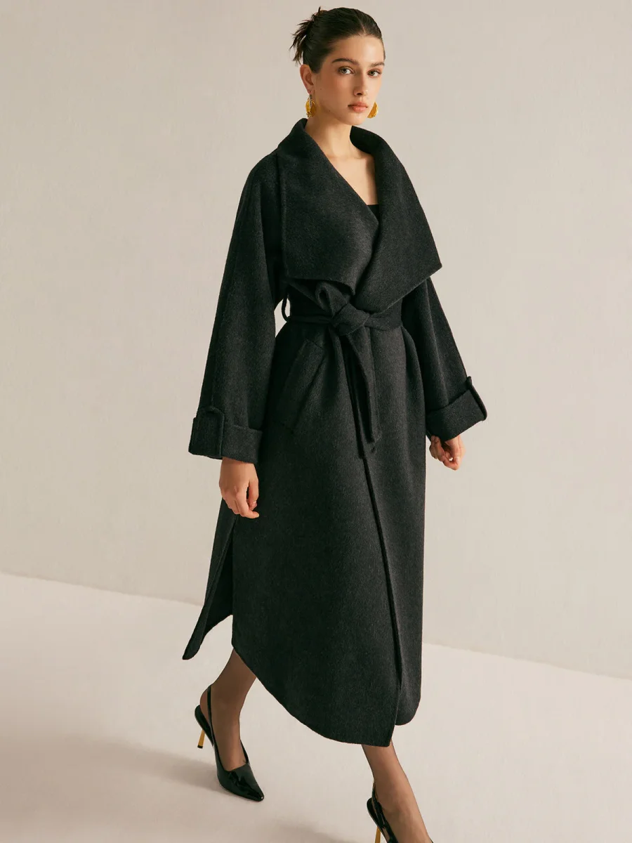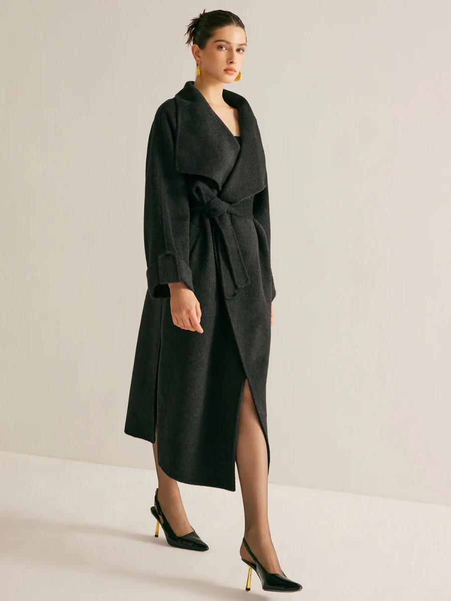 Long Belted Coat | Black | Oversized and Elegant