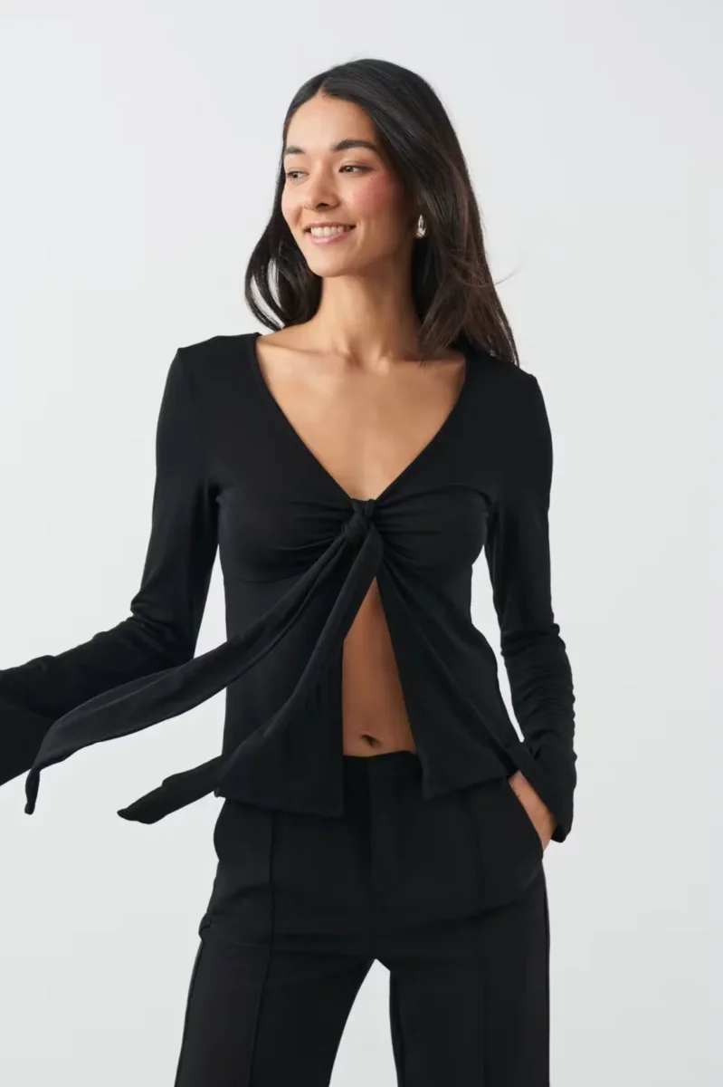Long Sleeve Knotted Top | Modern Evening Elegance